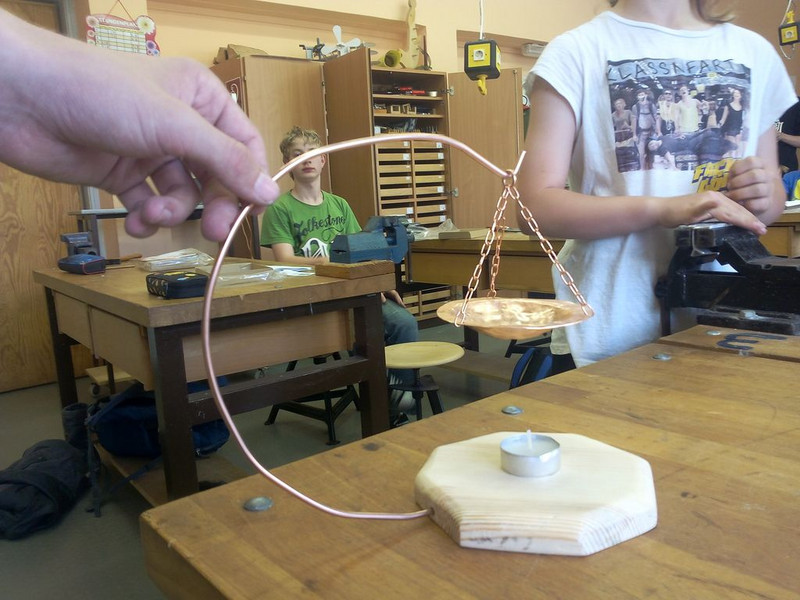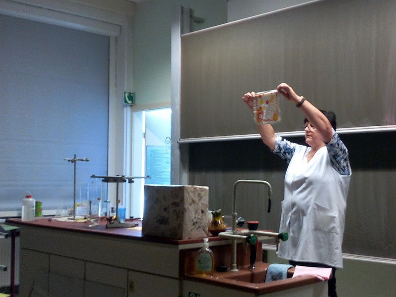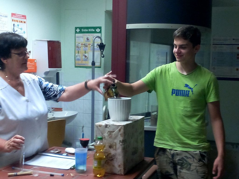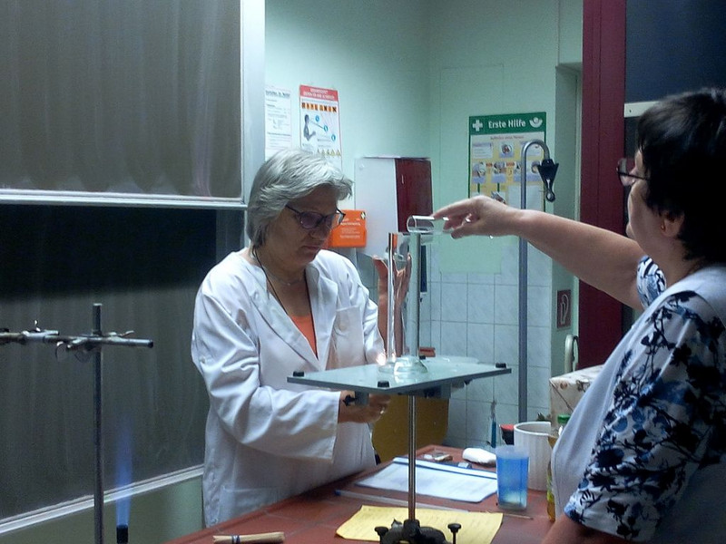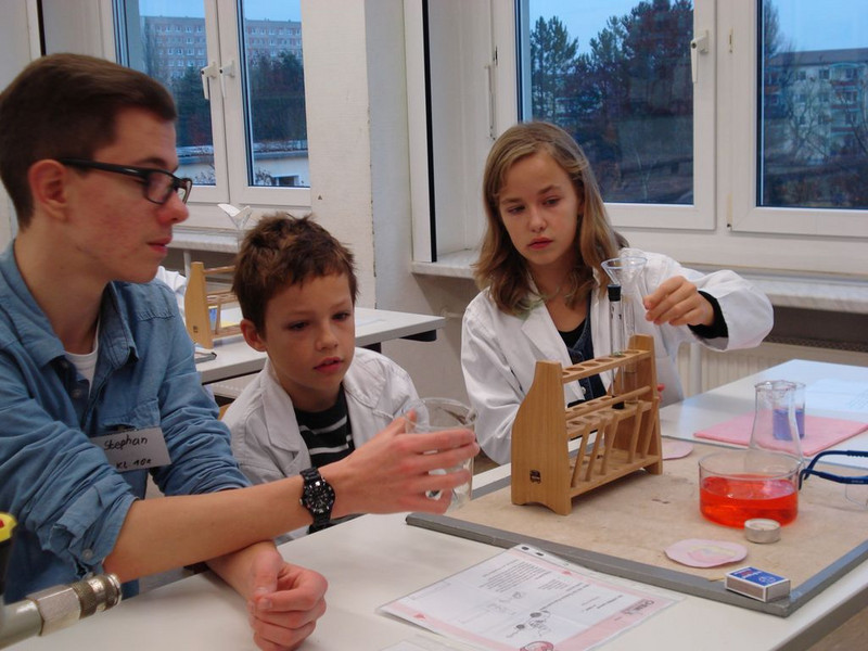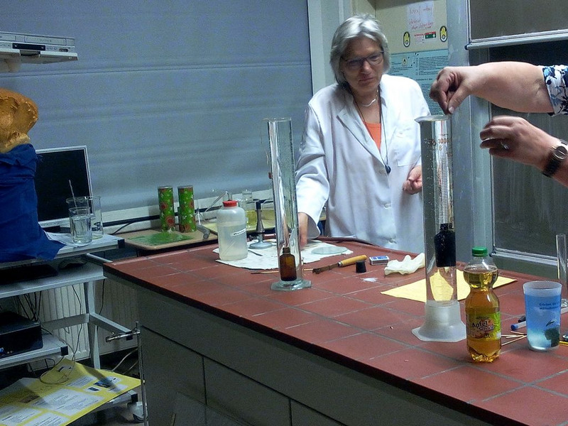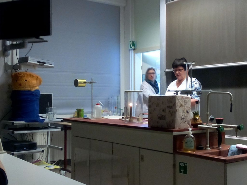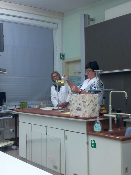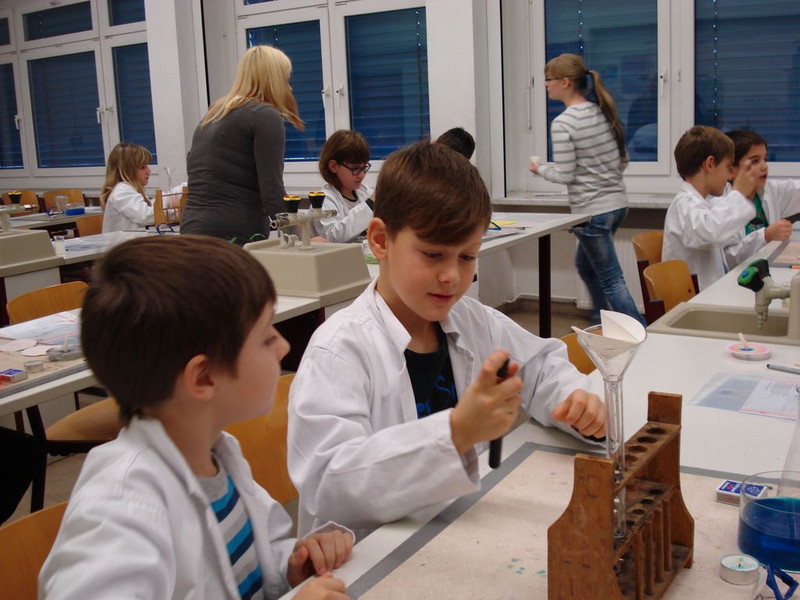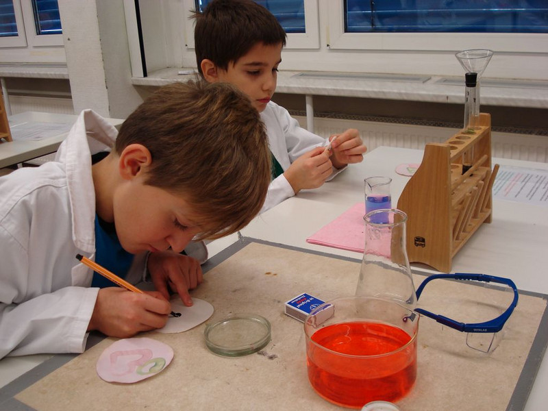 Stempeln und als Lesezeichen laminieren. Im Chemiekabinett wurden interessante Experimente durchgeführt z. B. kann ein Teelicht Fahrstuhl fahren.