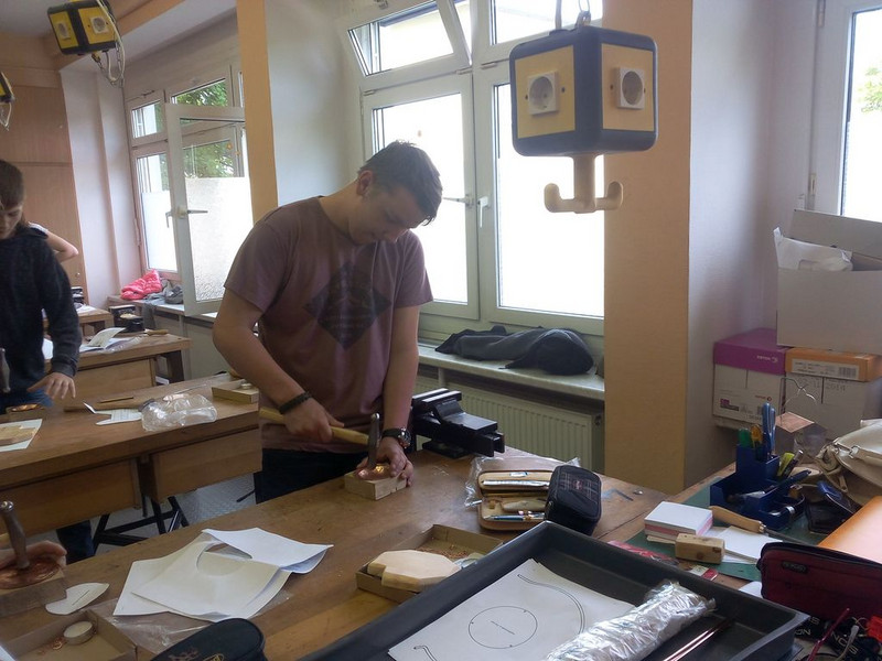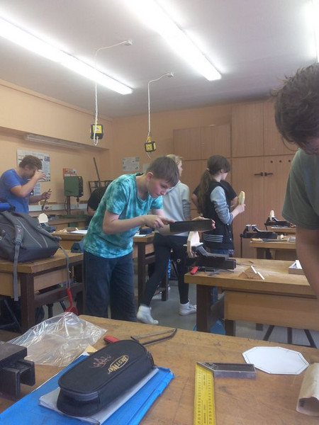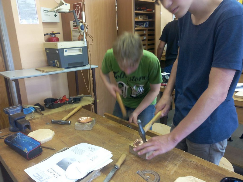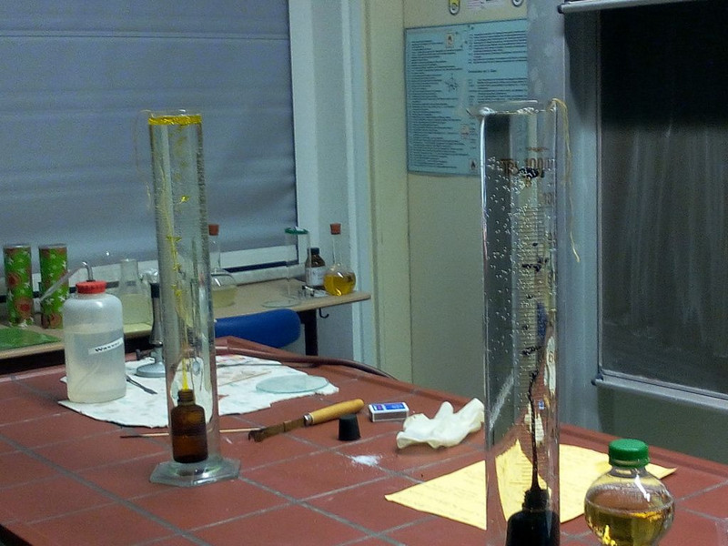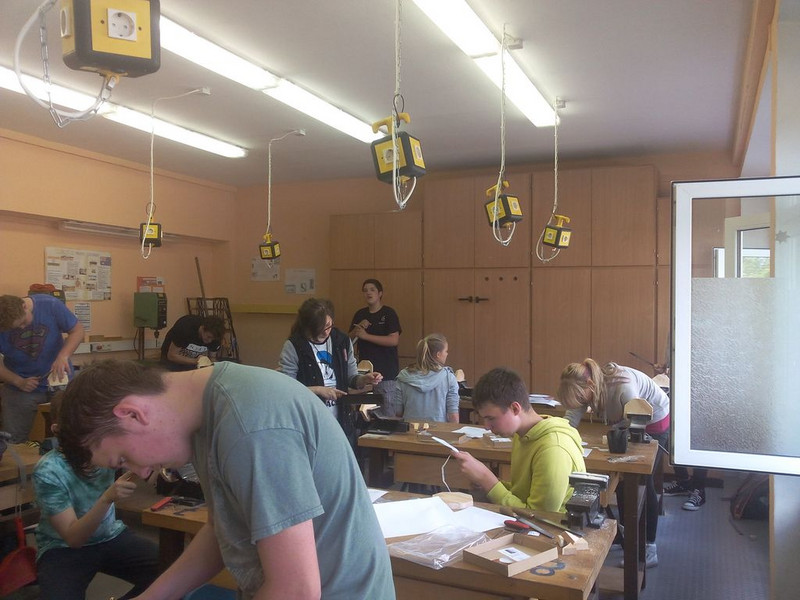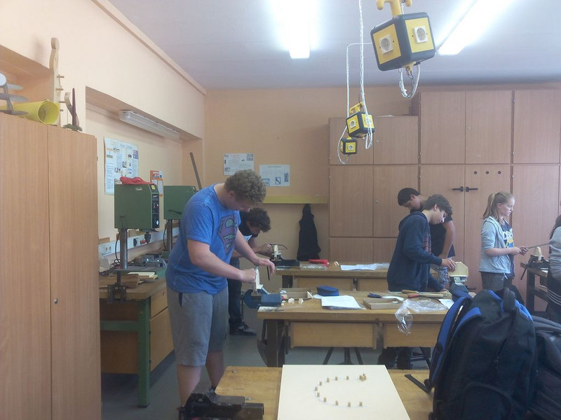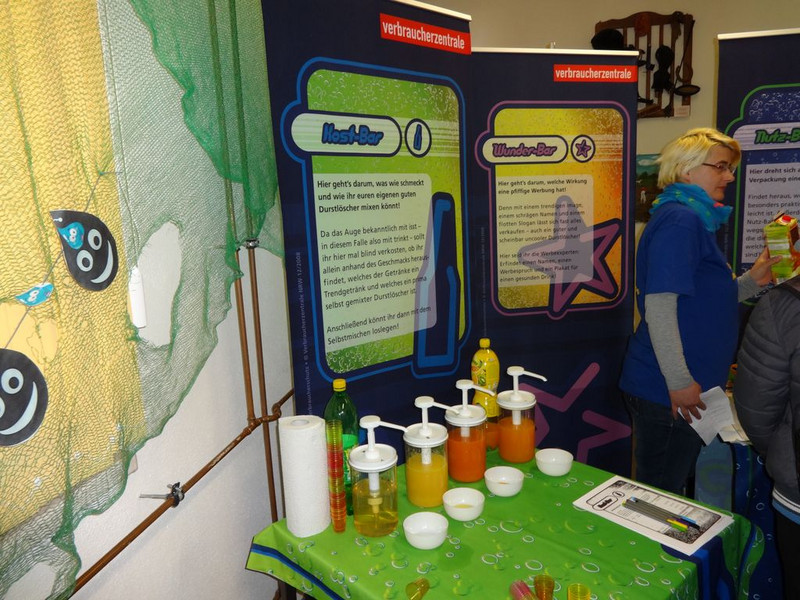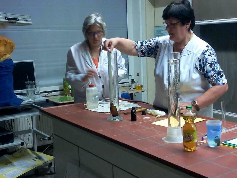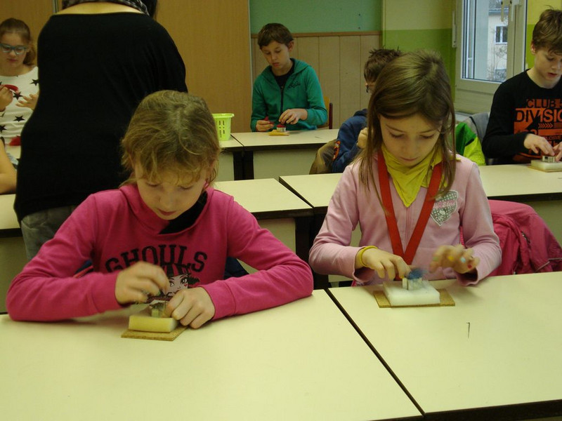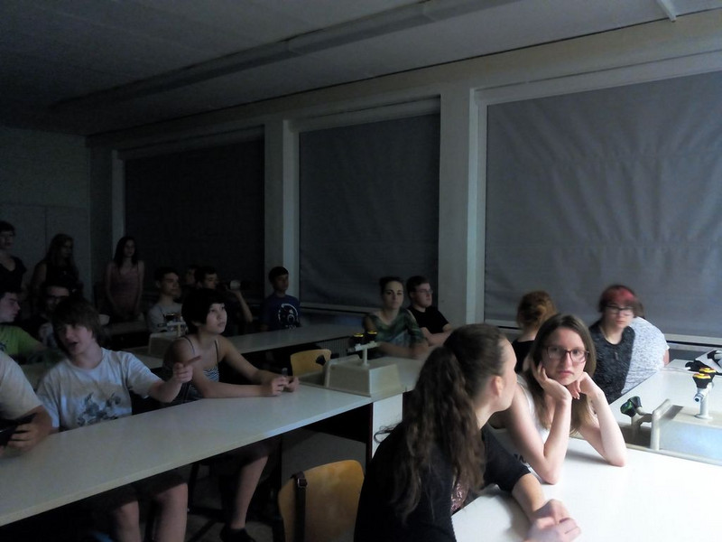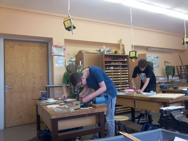 Stempeln und als Lesezeichen laminieren. Im Chemiekabinett wurden interessante Experimente durchgeführt z. B. kann ein Teelicht Fahrstuhl fahren.