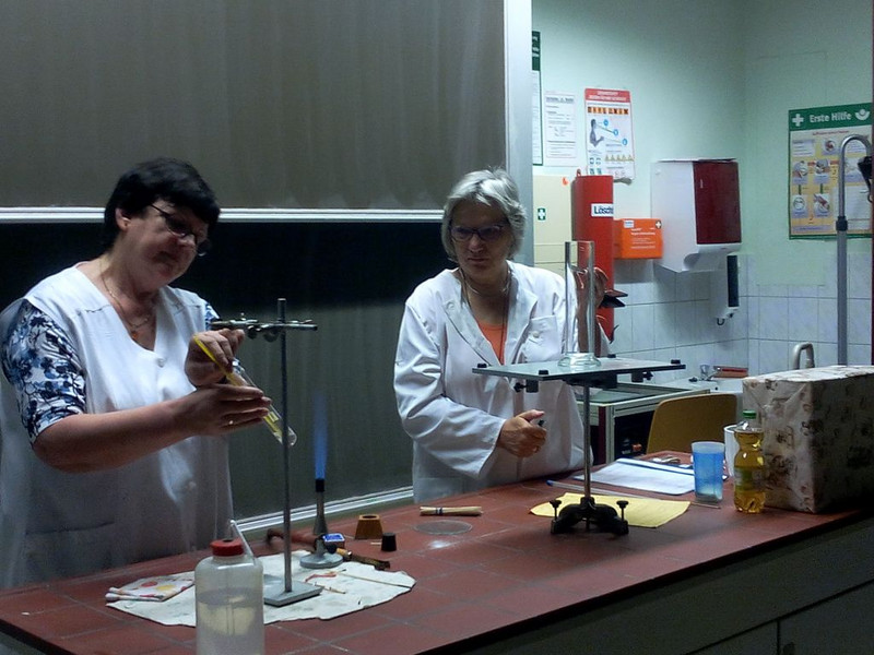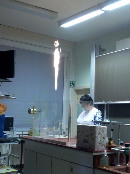 Am heutigen Donnerstag führte Frau Robel mit Unterstützung durch Frau Mühle ihre letzte Chemieshow vor. 6 Jahre hat sie diese im Weihnachtsprojekt für interessierte Eltern und Schüler aufgeführt. Heute waren es die Schüler der Klasse 9a und unsere Aussiedlerkinder, die sie erlebten durften. Auch wenn nicht jedes Experiment gelang, "Der Teufel steckt im Detail", so Frau Robel, war es doch beeindruckend, was man mit Chemikalien, Wärme und anderen Dingen alles für Effekte zeigen konnte. Den Schülern hat es gefallen, ein großes Lob und Dankeschön an Frau Robel.