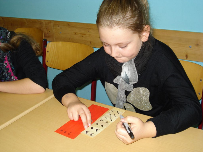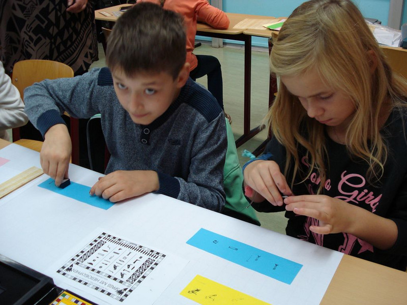 Bei der Station Geschichte konnte jeder Schüler seinen Namen in Hieroglyphen auf ein Papyrusblatt