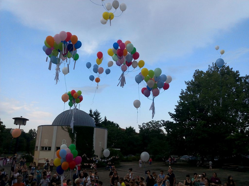 Höhepunkt stellte das Aufsteigen der vielen bunten Luftballons, an denen Wünsche der Schüler geheftet waren, dar. Dazu sang Loreen aus der Klasse 9a ihr umgedichtetes Lied nach der Version von Nenas "99 Luftballons".