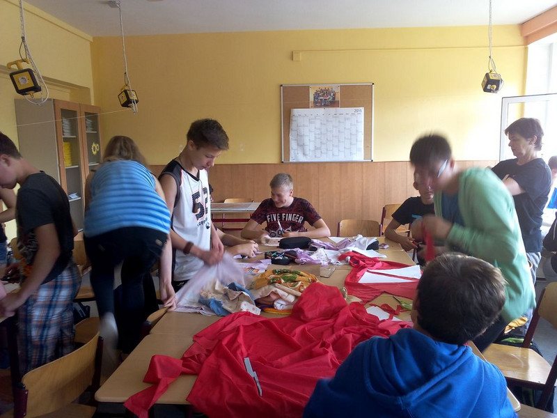 Heute trafen sich am Vormittag alle 12 Klassen unserer Schule zur Vorbereitung auf morgen. Wimpelketten wurden von jeder Klasse gebastelt, die zur Ausgestaltung dienen.