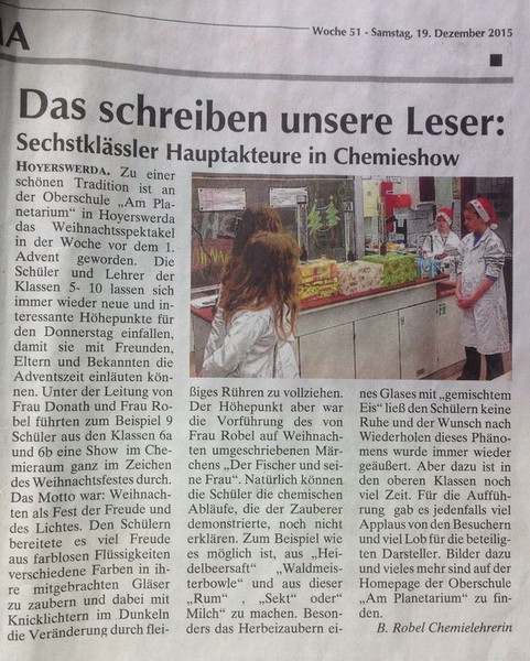 Die Schülerin Josie van der Daele aus der Klasse 7a nahm erfolgreich am Chemkids- Wettbewerb Sachsens teil und erreichte eine ordentliche Platzierung.