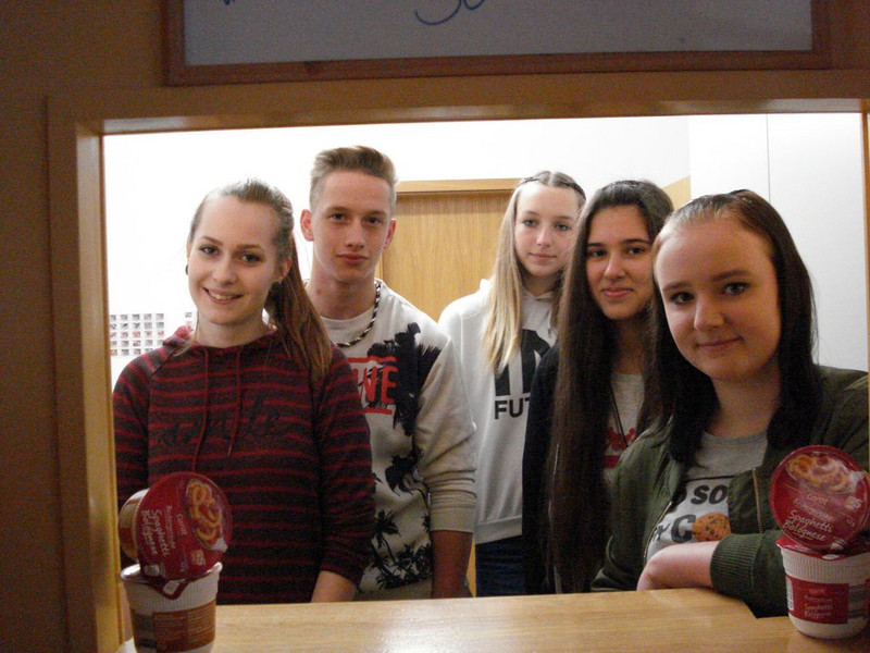 Seit Januar 2018 ist die Schülerfirma - „Fino“ wieder in Betrieb. Mit viel Spaß bereiten 5 Schüler der 9.Klasse einen Mittagsimbiss vor, um sich ein klein wenig das Taschengeld aufzubessern und zugleich die hungrigen Mägen von euch zu füllen. Im vergangenen Jahr bewiesen sich diese Schüler im Neigungskurs „Fino“ als sehr fleißig.