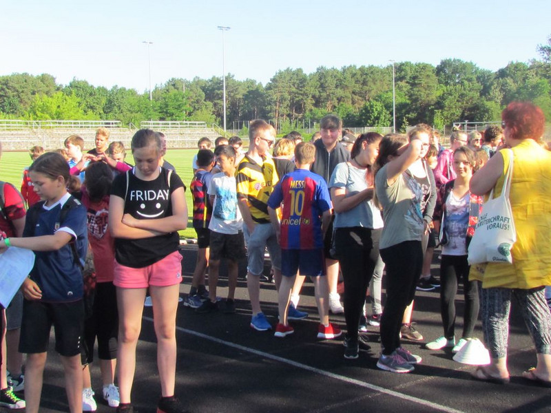 Am heutigen Mittwoch fand das Sportfest statt. An 5 verschiedenen Stationen wie Pendelstaffel, Medizinballweitwerfen, Schlagball, Hochsprung und Weitsprung kämpften die Klassen als Gruppe um den Sieg. Es zählte also die Kollektivleistung. Bei sonnigem Wetter und noch erträglichen Temperaturen war ein Erfolg auch möglich. Die Schüler der Klasse 9a waren als Kampfrichter oder als Ordnungsgruppe eingesetzt und absolvierten ihre Aufgaben mit Bravour.