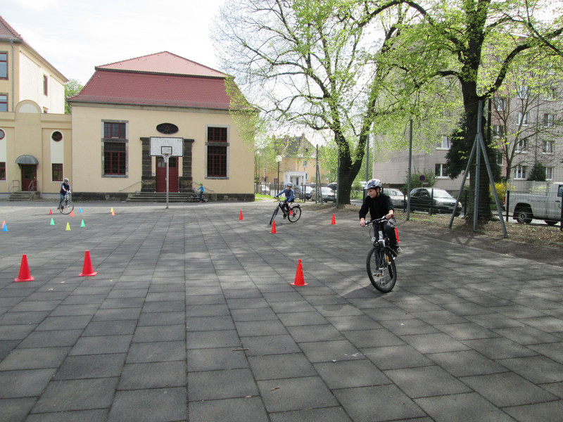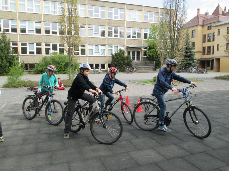 Am 07.04.2014 führte der ADAC Sachsen für die Schülerinnen und Schüler der Klassenstufe 5 ein Fahrsicherheitstraining durch. Es wurden die Bremswege eines Auto erläutert und in praktischen Versuchen demonstriert. Auch die Räder der Schülerinnen und Schüler wurden auf Fahrtüchtigkeit und -sicherheit kontrolliert. Anschließend mussten mit dem Fahrrad verschiedene Parcours gemeistert werden.