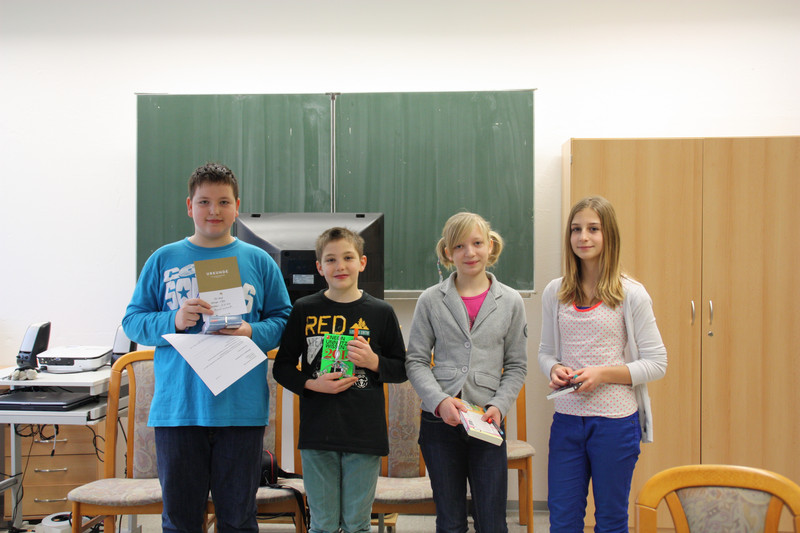 Am 11.12.2013 fand der Vorlesewettbewerb unserer Schule statt. Daran nahmen die Klassenbesten der 6.Klasse, Isabelle Lilpopp, Henrike Rüßger, Elias Noack und Felix Hauswald teil.