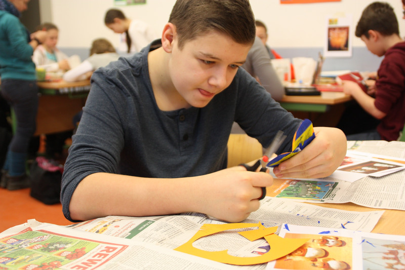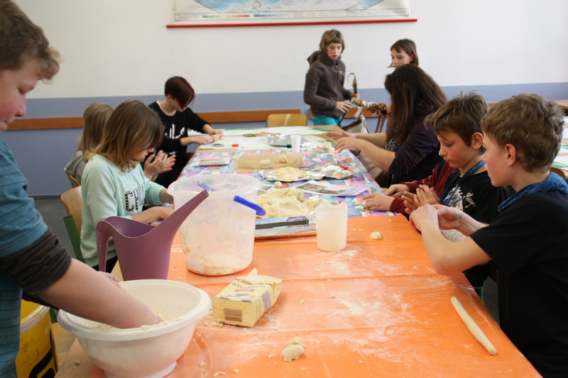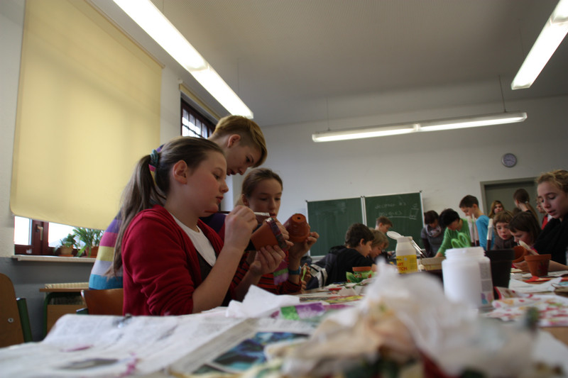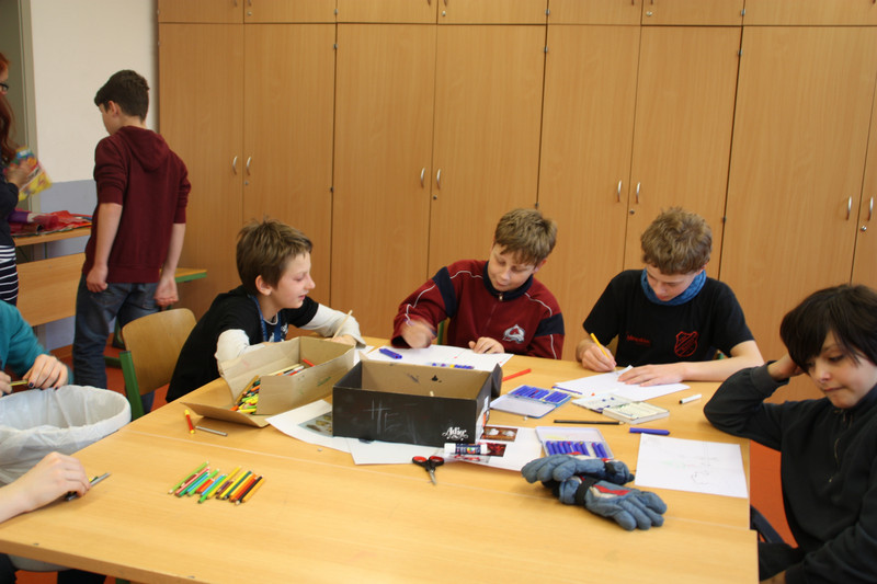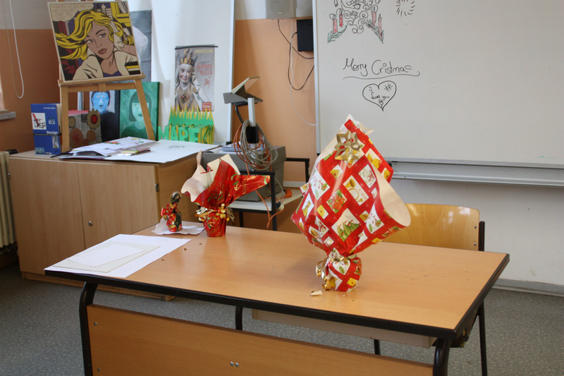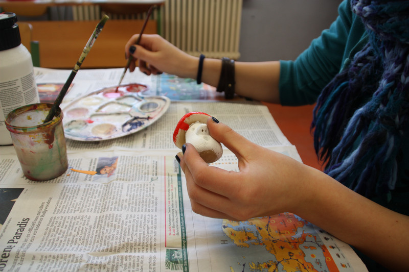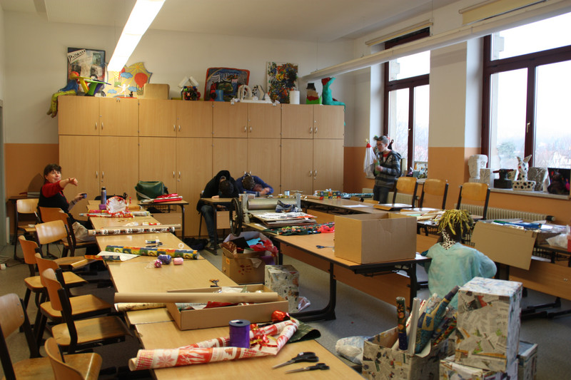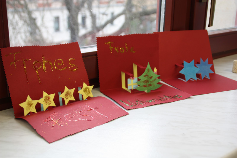 Am Donnerstag, 19.12.2013, fand für alle Schülerinnen und Schüler ein gemeinsames Weihnachtsbasteln statt. So gab es zum Beispiel Stationen für 3D-Karten, Salzteig, Kerzen gestalten, Faltsterne oder Geschichten vorlesen. Die Schüler der Klassen 9 und 10 betreuten die verschiedenen Stationen.