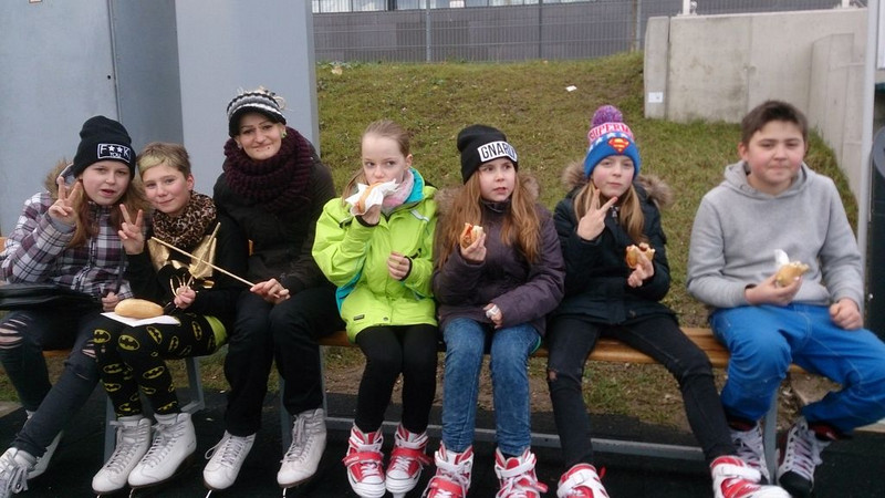Mit unserem KIK-Leiter und seinen zwei Praktikantinen waren wir, 7 Kinder aus den Klassenstufen 5 und 6, auf der Eisschnelllaufbahn in Dresden. Wir hatten viel Spaß zusammen und haben richtig auf die Pauke gehauen mit unserem Eislaufkünsten. Wir haben zusammen leckere Waffeln und Bratwürste gegessen, haben viel gelacht und sind richtig schnell gefahren (für unsere Verhältnisse).