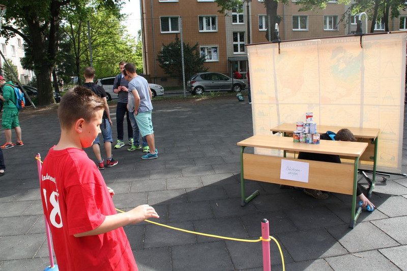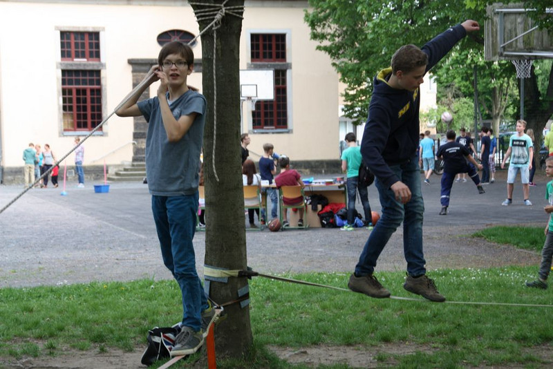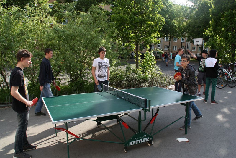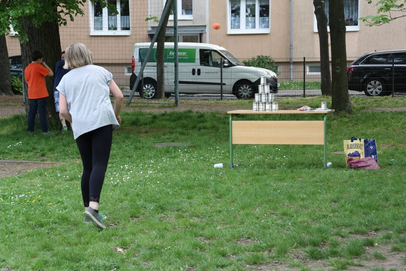 Auf Hof B ging es sportlich zu. Neben Tischtennis und Basketball wartete ein Stand mit Büchsenzielwurf.