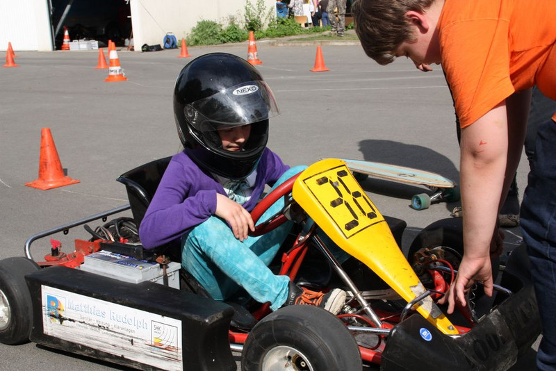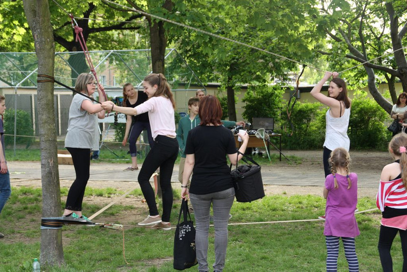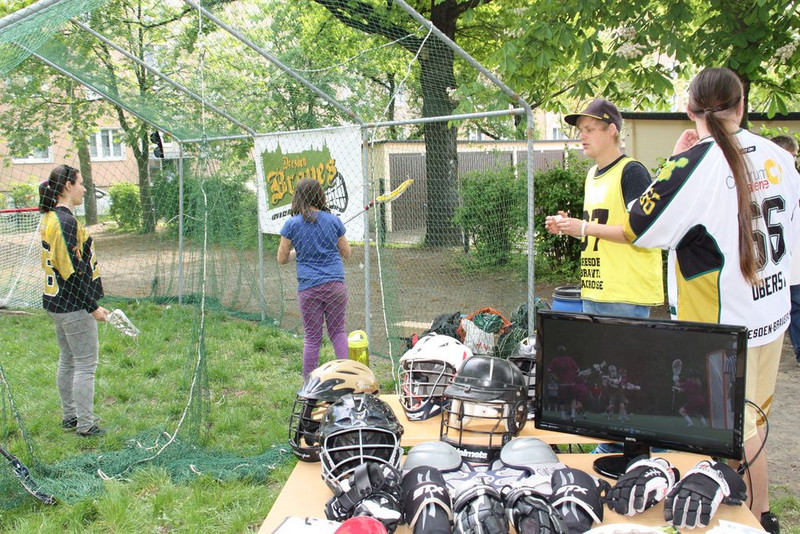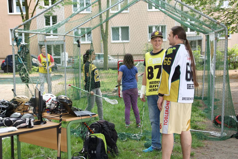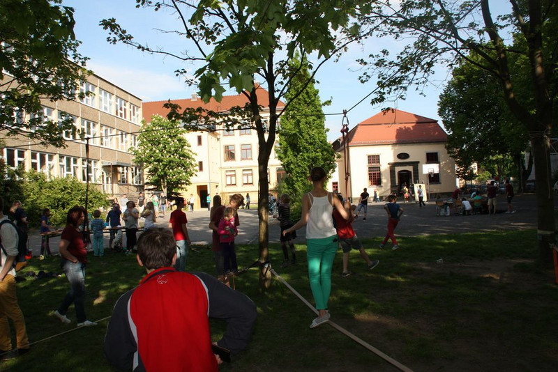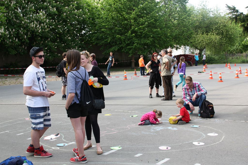 Auf dem Hof C gab es u. a. verschiedene Experimente, Slackline, Barfußpfad, E-Kart, Wikingerschach und Lacrosse.
