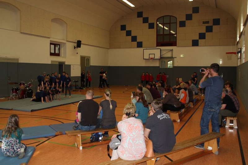 In der Turnhalle konnten Vorführungen in Akrobatik, Percussion und Aikido angeschaut werden.