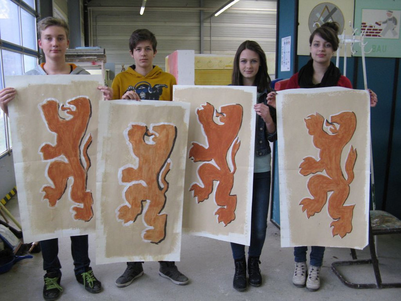 - Konstruktive Vergrößerung des Dresdner Wappenlöwens mit Hilfe des Rasterverfahrens und anschließender farblicher Auslegung