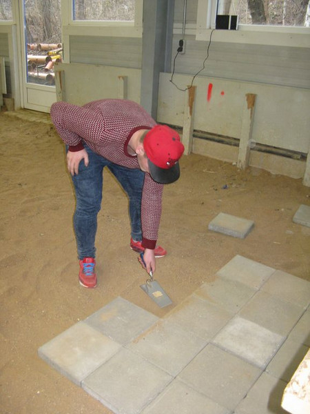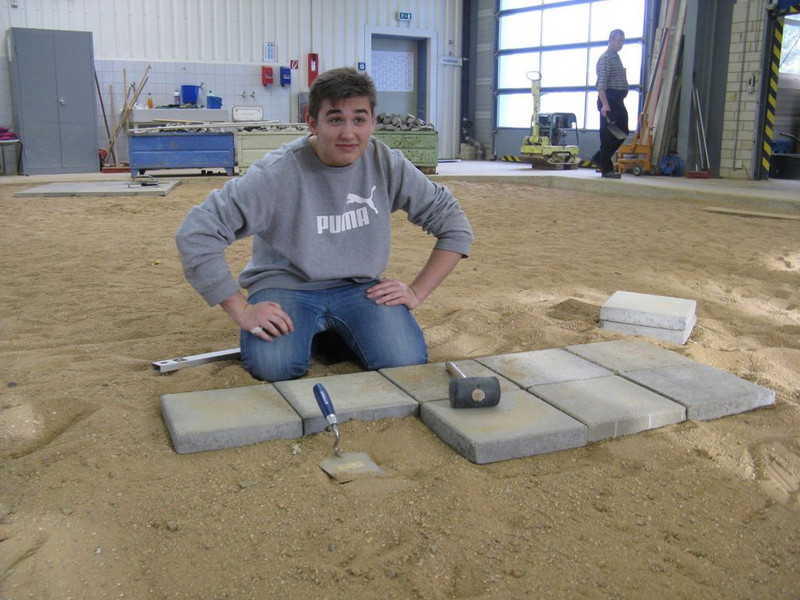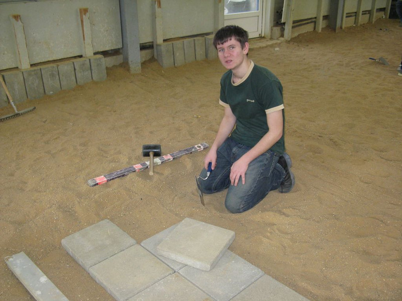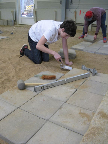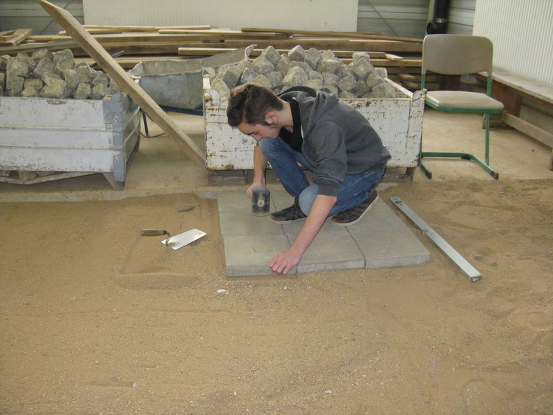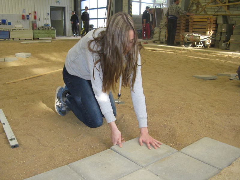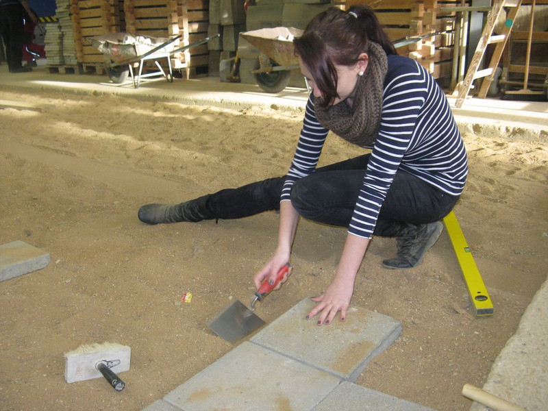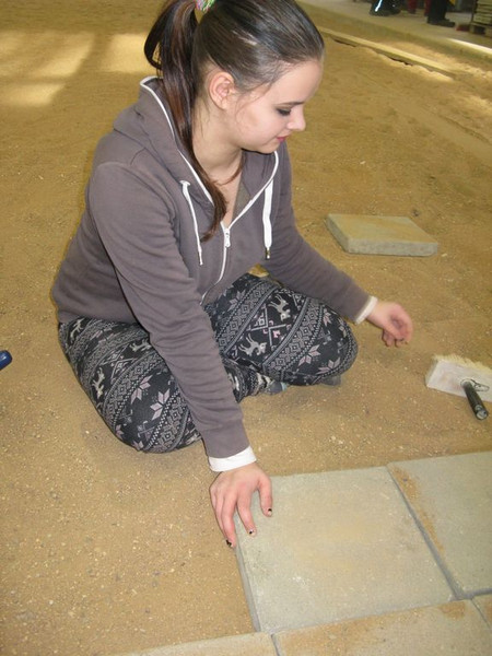 - Praxis: Herstellen einer befestigten Fläche (Terrasse) aus Betongehwegplatten 30 x 30 cm auf einer Fläche von 1,50 x 1,50 m in Kiesbettung