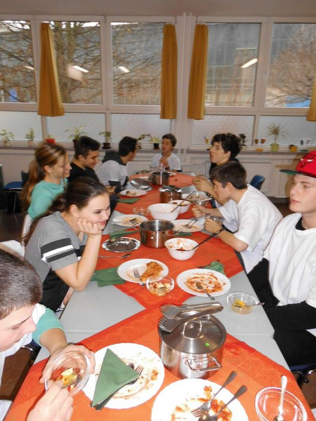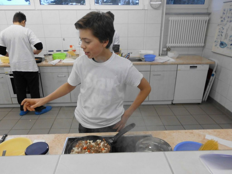 - Zubereitung einer Mahlzeit: Spaghetti Bolognese und Obstsalat