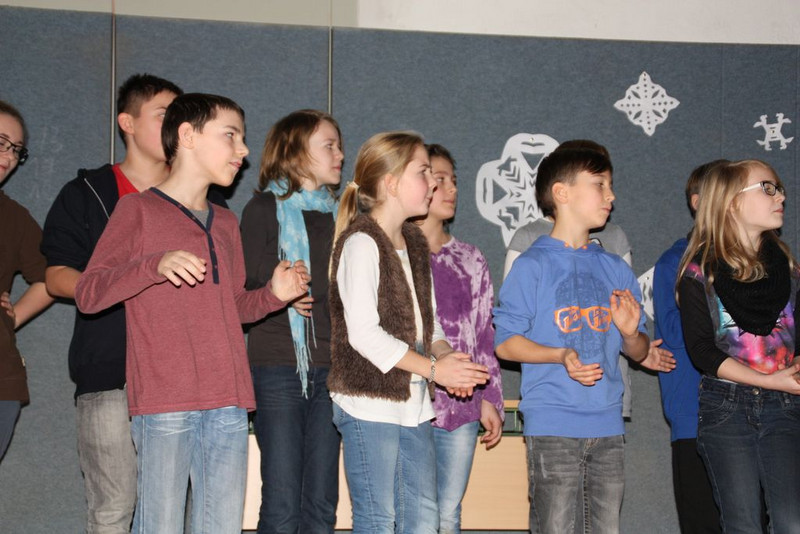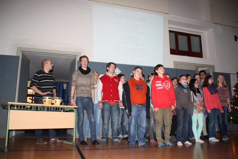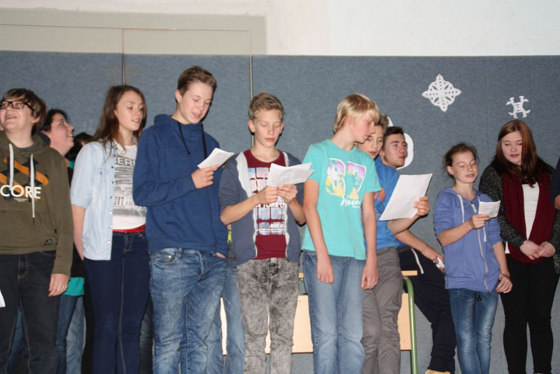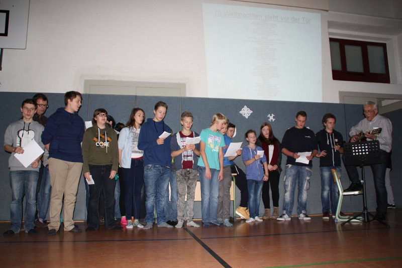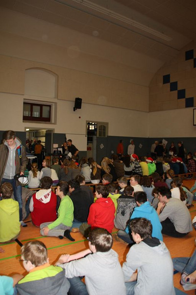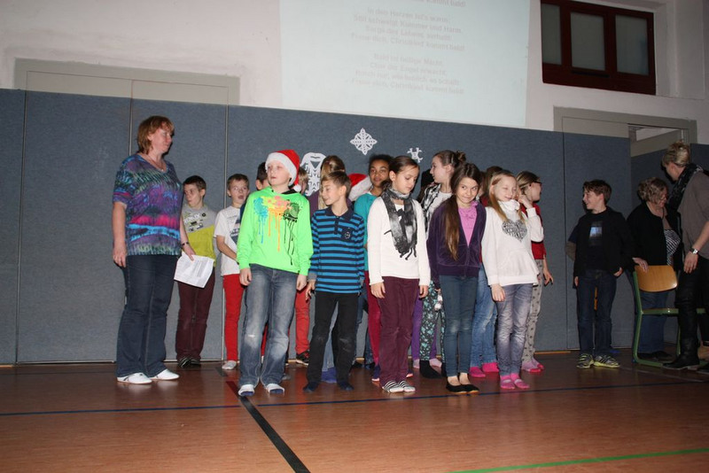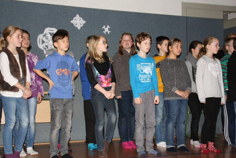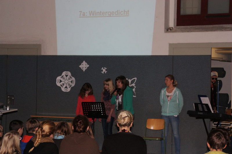 Bevor die Schüler und Lehrer in die verdienten Weihnachtsferien starten konnten, gab es in der Turnhalle wieder ein gemeinsames, 90-minütiges Weihnachtsprogramm. Jede Klasse hatte ein Weihnachtslied, Gedicht oder Instrumentalstück vorbereitet. Und auch die Lehrer hatten ein Weihnachtslied eingeübt.