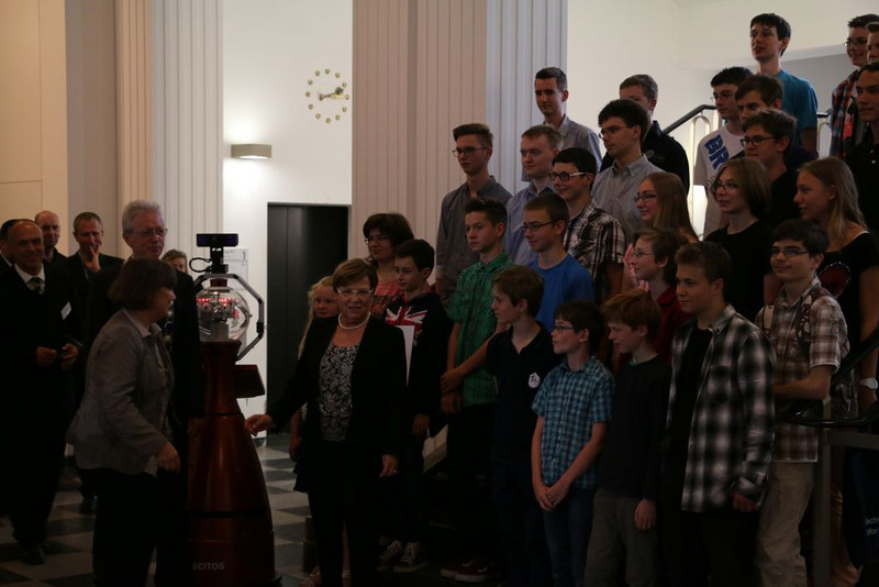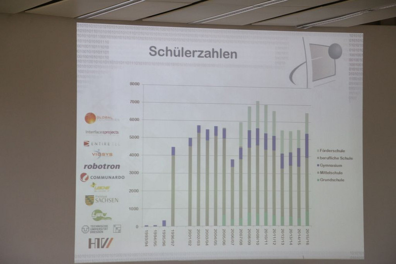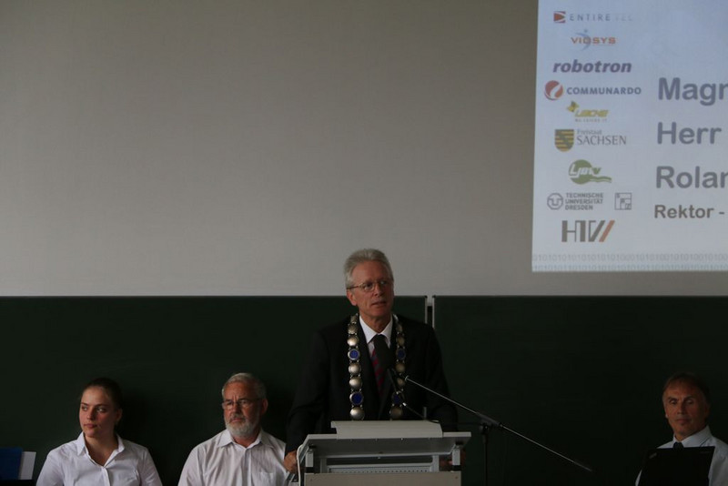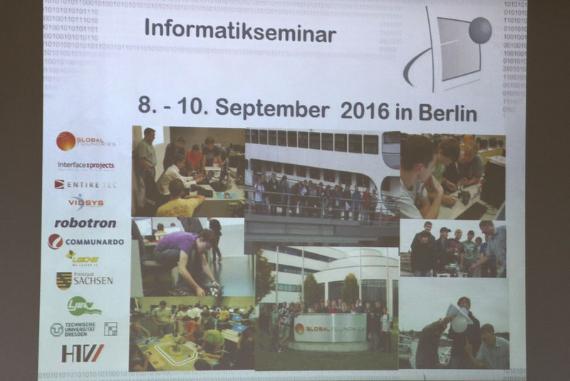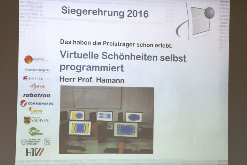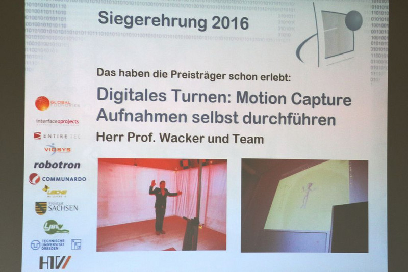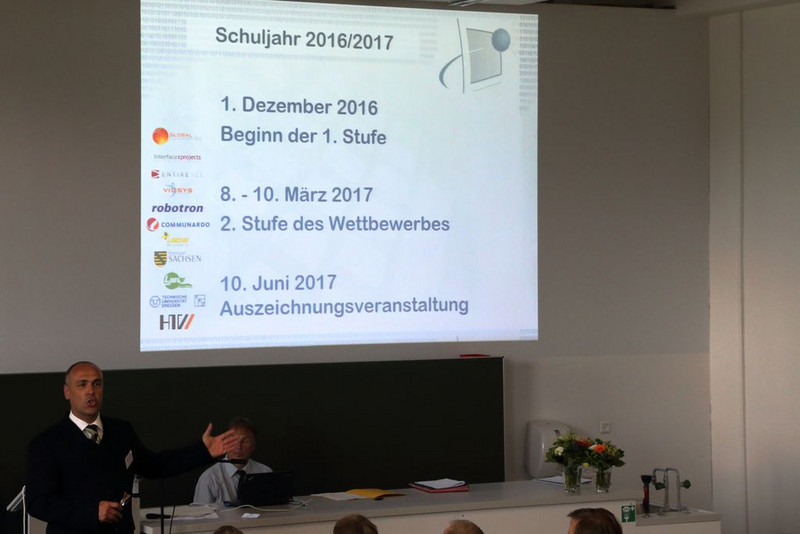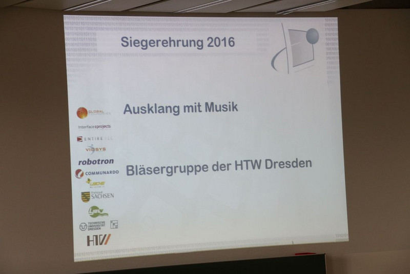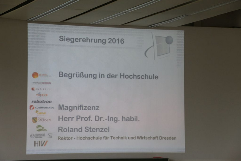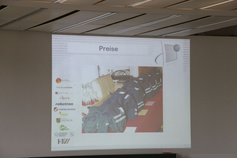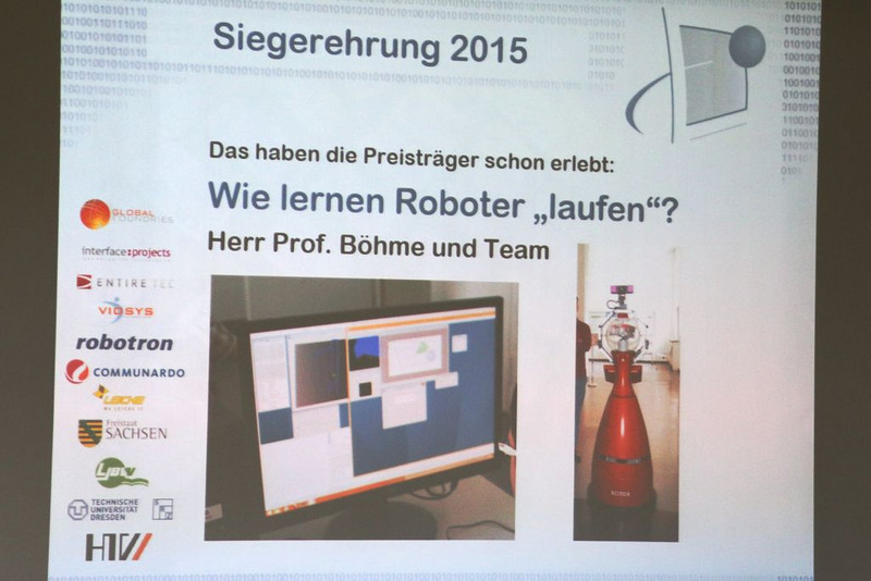 Am Vormittag bekamen die Gäste einen Einblick in erreichte informatischen Leistungen der Studenten der HTW Dresden. Unter anderem konnte ein sprechender und laufender Roboter bestaunt werden. Dieser brachte dann bei der anschließenden Auszeichnung die Präsente für die Preisträger auf die Bühne.