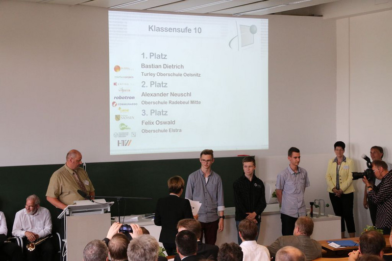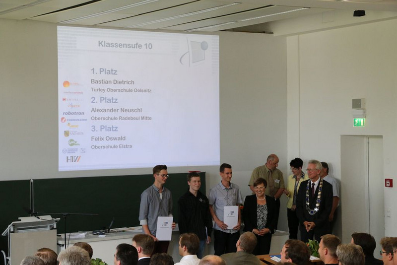Die Preise überreichten die sächsische Kultusministerin, Frau Kurth, und der Rektor der HTW, Magnifizenz Professor Stenzel. Die genauen Platzierungen waren den Schülerinnen und Schülern bis zum Übergabe der Urkunden nicht bekannt.