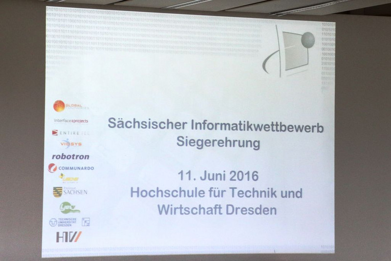 Im Beisein der sächsischen Kultusministerin, Frau Kurth, fand am Sonnabend, 11.06.2016, in der Hochschule für Technik und Wirtschaft Dresden die Auszeichnungsveranstaltung des Sächsischen Informatikwettbewerbes 2015/16 statt.