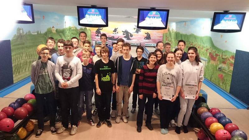 Am vorletzten Schultag trafen sich 24 eingeladene Jungen und Mädchen der Klassen 9 zum Bowlingturnier im Krokofit. Nach spannenden Spielen und zwei Stunden Spaß konnten Hanna Heduschka und Alexander Hamel aus der 9c den Wettkampf für sich entscheiden.