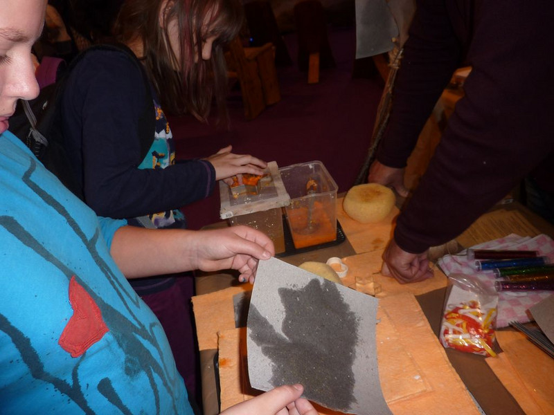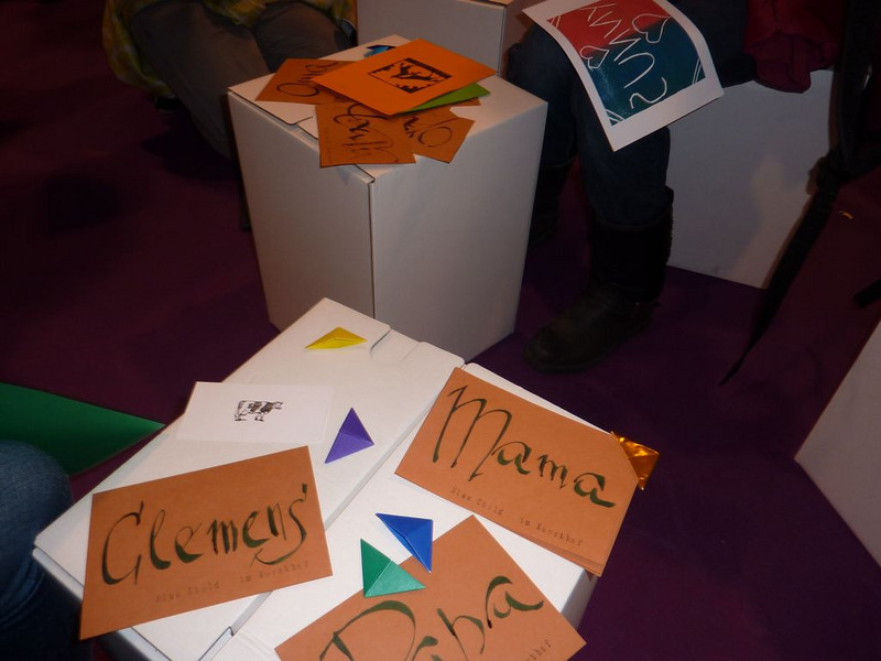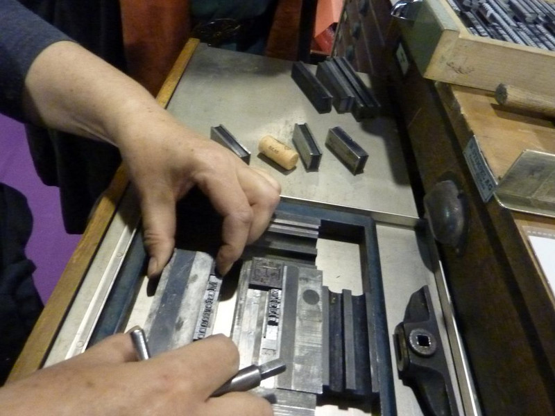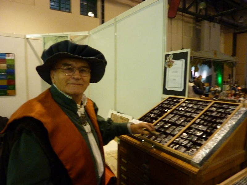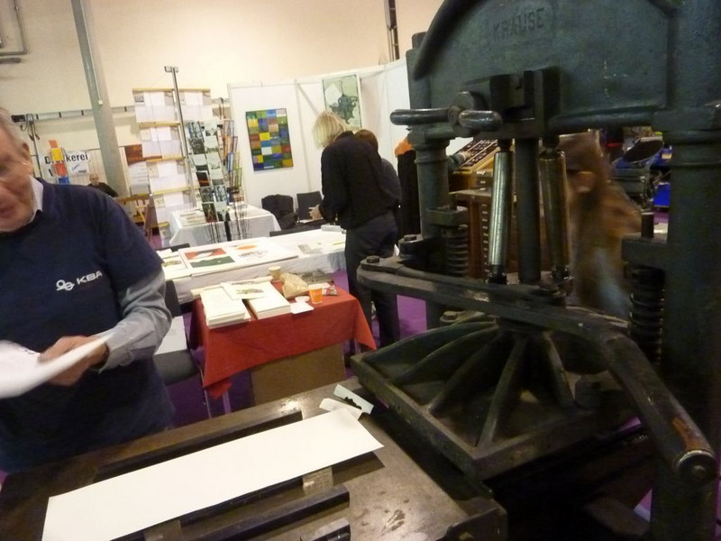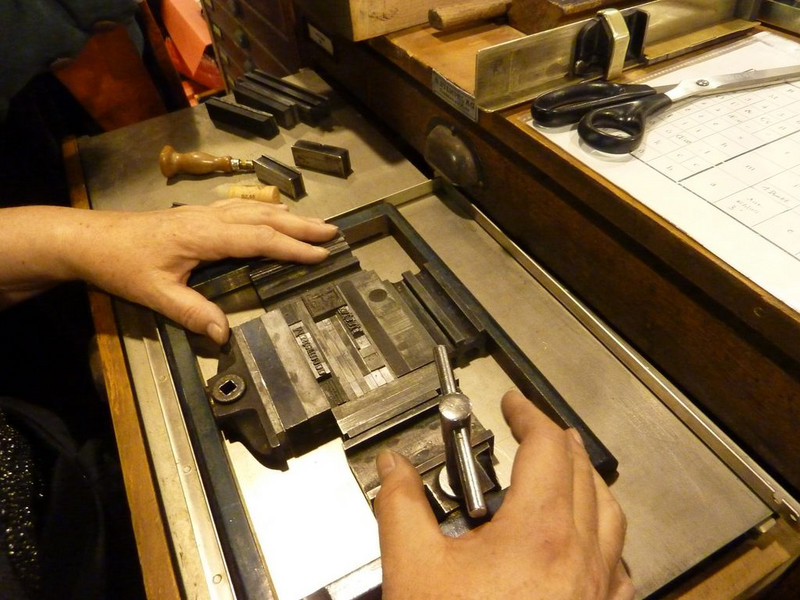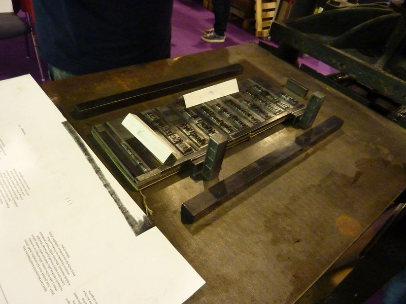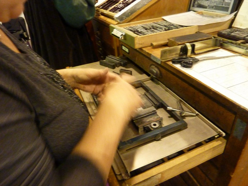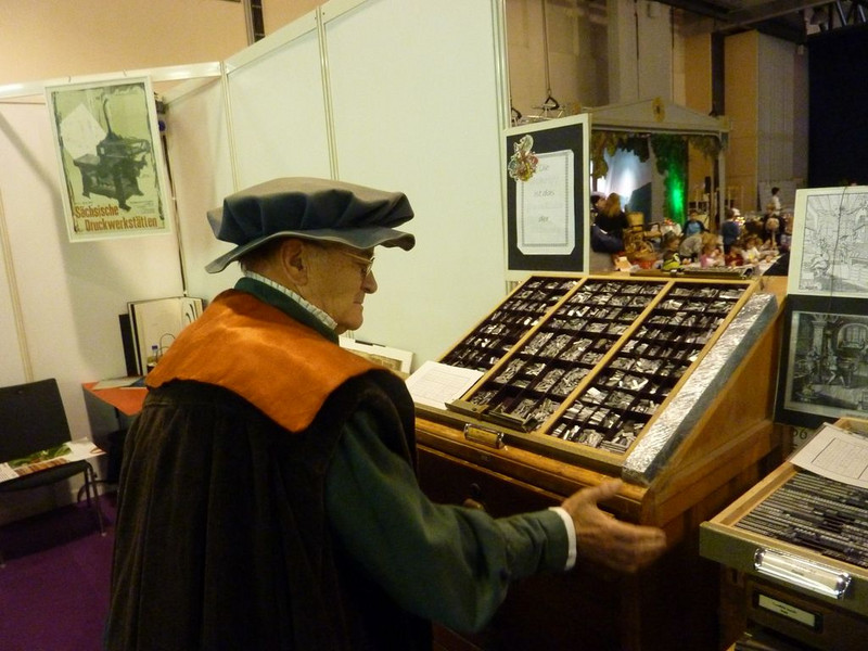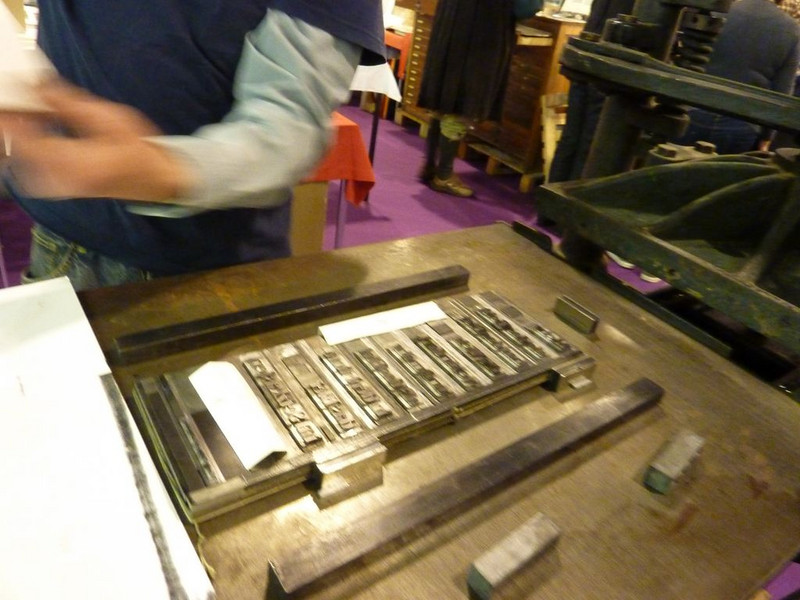 Endlich konnten wir verschiedene Druckerpressen sehen und auch damit drucken. Es gab auch Stände mit anderen Schreibgeräten, wie Federn oder Schreibmaschinen. Dort konnten wir selbst tätig werden.