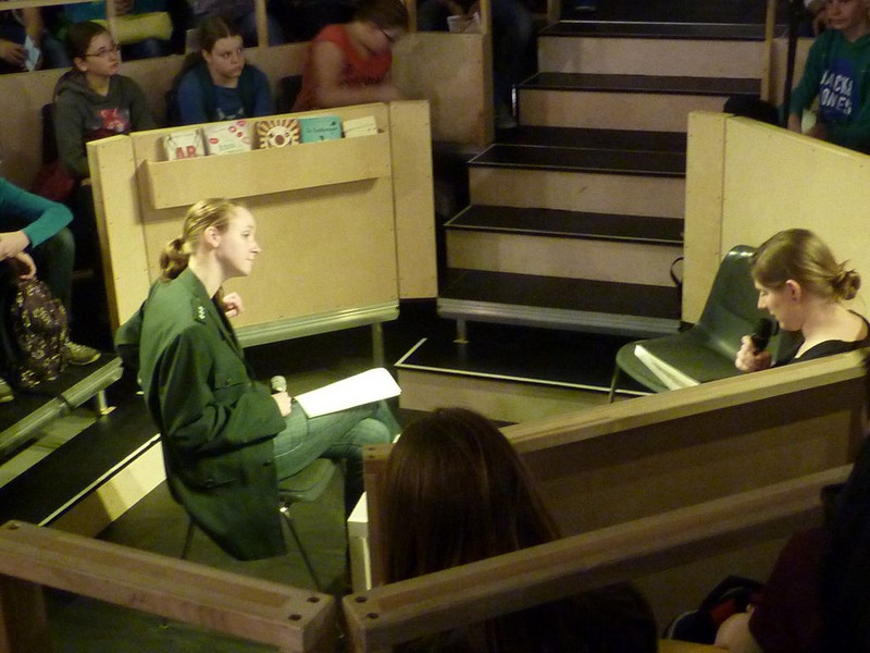 Völlig unbekannt war für uns „Bookslam“. Wir wussten nicht, was uns dort erwarten würde. Ganz einfach: Es wurden verschiedene Bücher vorgestellt und wir konnten diese bewerten, was uns am besten gefiel.