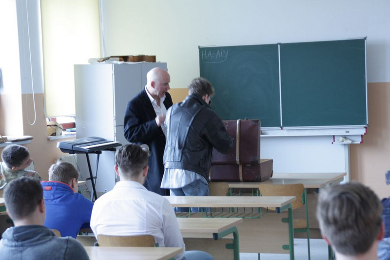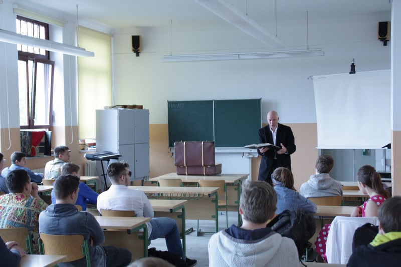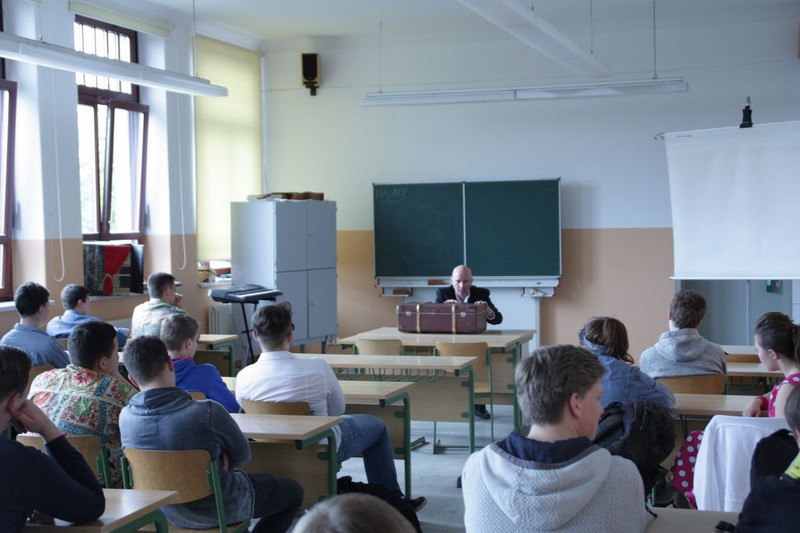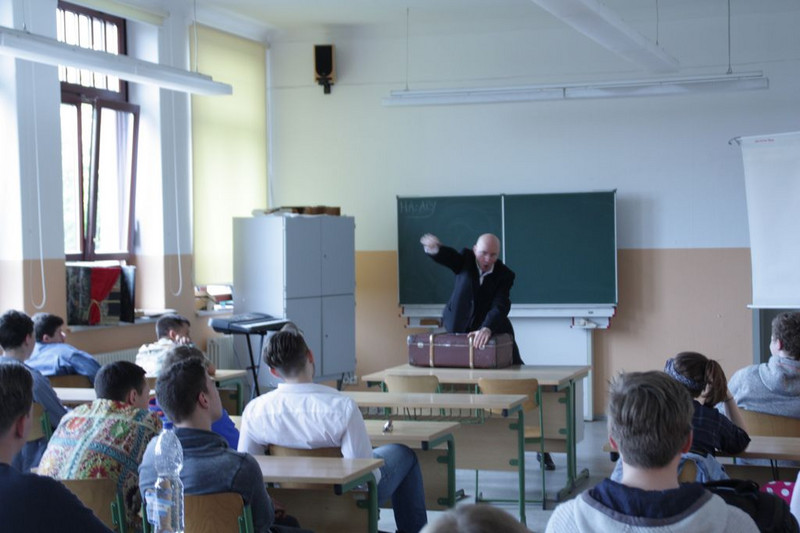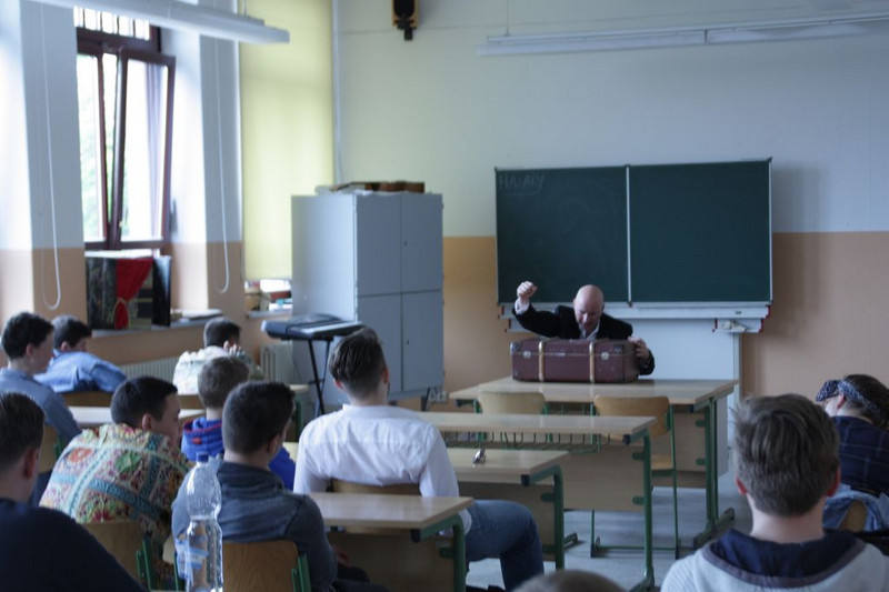 Steffen Pietsch (Faust) und Annekathrin Handschuh (Souffleuse) von den Landesbühnen Sachsen waren am 19.04.2016 an unserer Schule zu Gast.