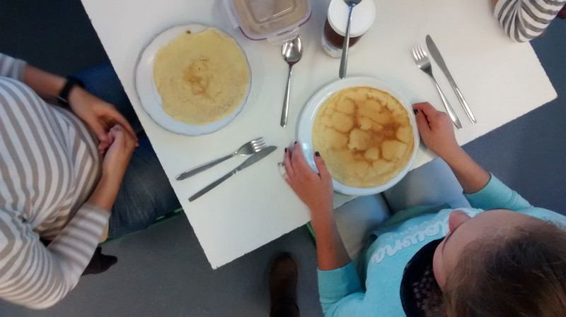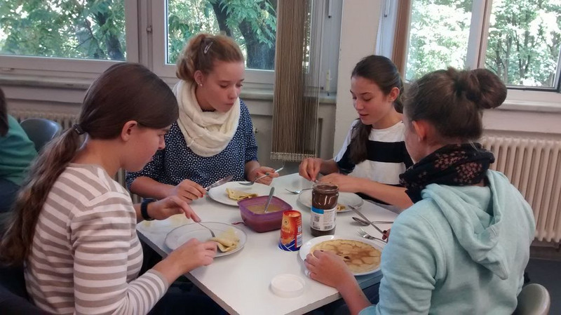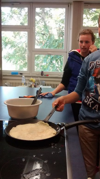 Der Französischunterricht des Französischkurses Klasse 8 fand vor den Herbstferien in der Schulküche statt. Eine Gruppe hat eine Quiche gebacken, was ein typisches französisches Gericht ist – und die anderen Gruppen haben hauchdünne Crêpes gemacht.