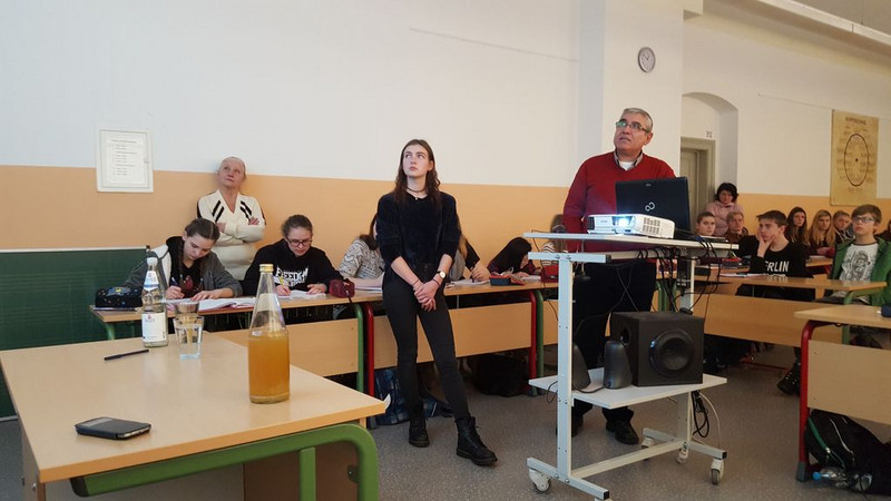 Das persönliche Ziel von Herrn Dahmach und Frau Deicke ist es, den sächsischen Schülerinnen und Schülern Informationen an die Hand zu geben, welche sie im Gespräch mit anderen Menschen nutzen können. Auf diese Weise sollen Vorurteile vermieden und abgebaut werden. Dieses Ziel konnte in unserer Schule erreicht werden. Sie und Herr Dahmach fanden viele lobende Worte über unsere Schule, die ihnen die Chance gegeben hat, miteinander ins Gespräch zu kommen. Auch die Schüler der Klassen 9A und 9B sowie alle teilnehmenden Lehrer bedankten sich herzlich und wünschten Herrn Dahmach im Namen der Schule alles Gute für die Zukunft. Ein besonderer Dank ging auch an Michelle aus der Klasse 10C, die als Dolmetscherin eine gelungene Kommunikation zwischen Herrn Dahmach und den Schülern ermöglichte.