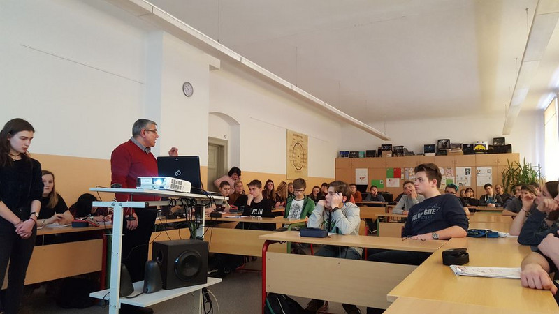 Herr Dahmach gab Antworten auf viele aktuell kontrovers diskutierte Fragestellungen der Politik. Er sprach über die Menschenrechtsverletzungen in Syrien, den autoritären Präsidenten Syriens, die Erfahrungen als Kriegsflüchtling und die Integrationsdebatte in Deutschland. Begleitet und unterstützt wurde Herr Dahmach von Frau Deicke, welche mit großem Engagement den Kontakt zu den Schulen herstellt.