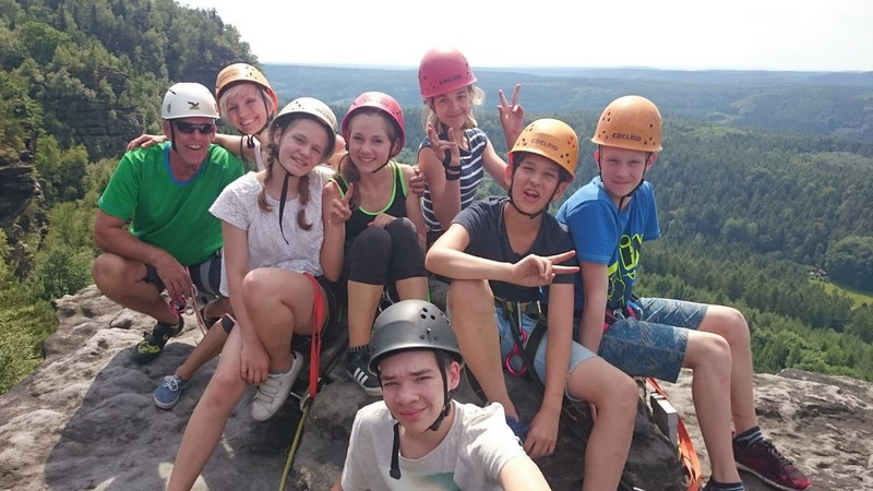 Die Jungen und Mädchen der 6 c besuchten vom 14.-16.6.2017 das Erholungs-und Naturcamp ERNA in Papstdorf in der sächsischen Schweiz. Bei schönstem Wetter wurden verschiedene Gipfel des Elbsandsteingebirges zu Fuß beim Bergwandern und per Seil und Klettergurt beim Felsklettern bezwungen.