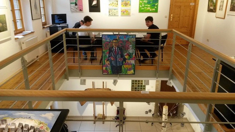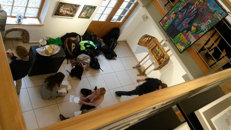Die Gruppe in der Stadtgalerie ließ sich auf das Thema "Besitzen" ein. Es ging um Radebeul. Viele Künstler schauten kritisch und gestalteten ihre Meinung auch so in den Kunstwerken. Andere lieben einfach Radebeul und malten, zeichneten und druckten ihre Lieblingsecken. Alle Schüler skizzierten mit viel Elan und Ausdauer das Kritische und das Schöne. Nach einer Dreiviertel-Stunde tauschten die Gruppen ihren Arbeitsplatz.