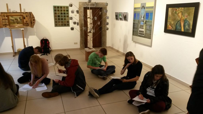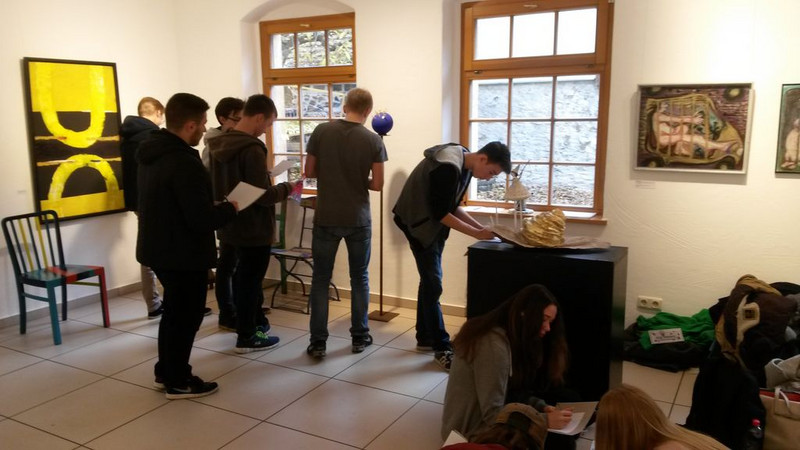 Am Freitag, den 21.10.16 besuchten alle Kunstschüler der 10. Klassen die Stadtgalerie in Kötzschenbroda. Fast 50 junge Leute belebten den erwürdigen Anger um die kleine Stadtgalerie.