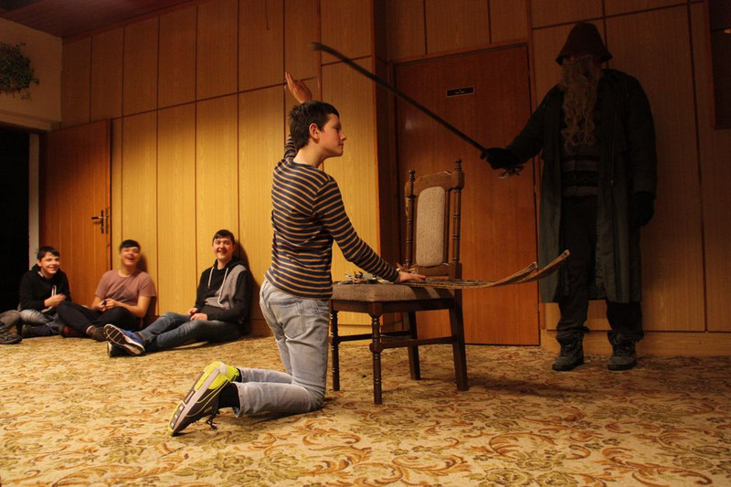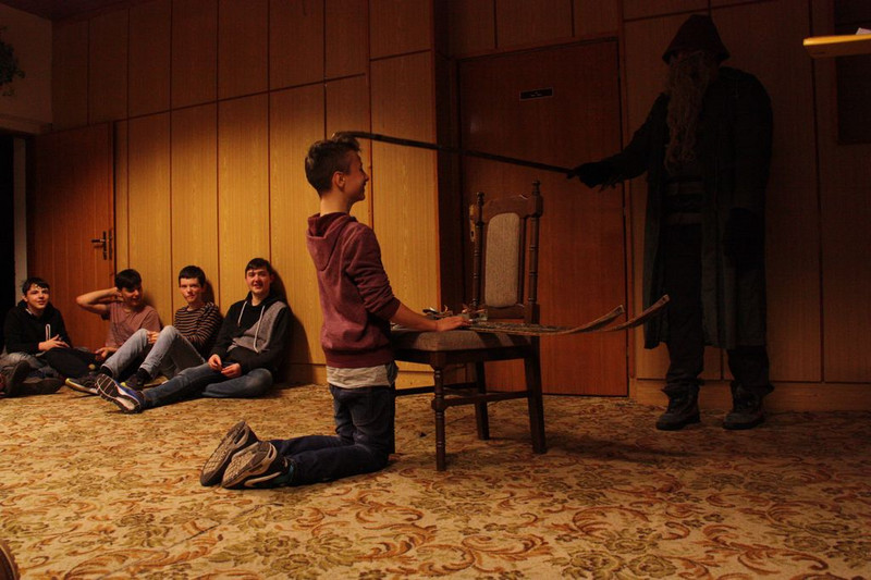 Abends kam dann Rübezahl zur Skitaufe und nahm alle Schüler in die Skifamlie des Riesengebirges auf.