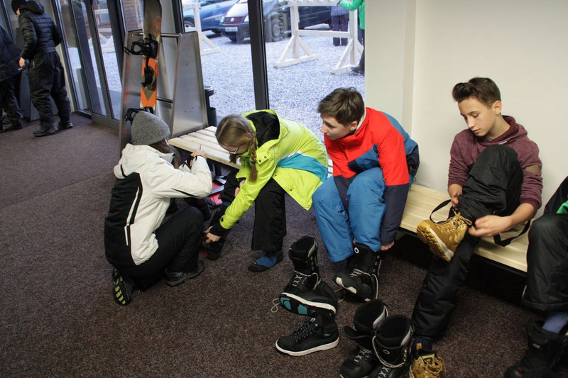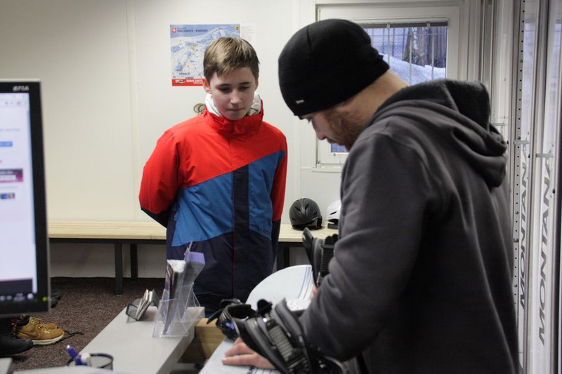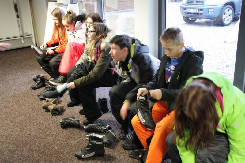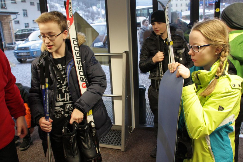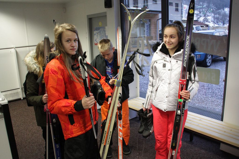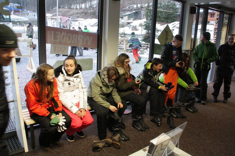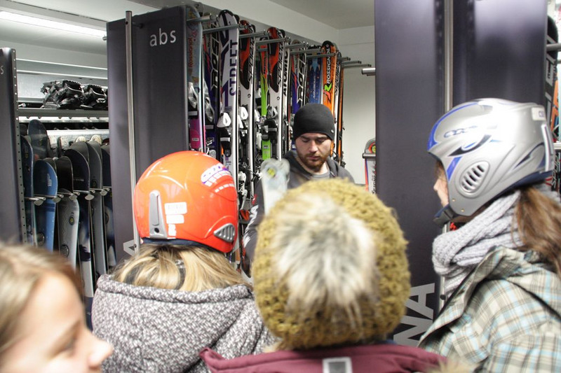 Anschließend ging es zur Skiausleihe. Es erfolgte die Auswahl und fachkundige Einstellung der Skibindungen.