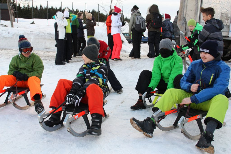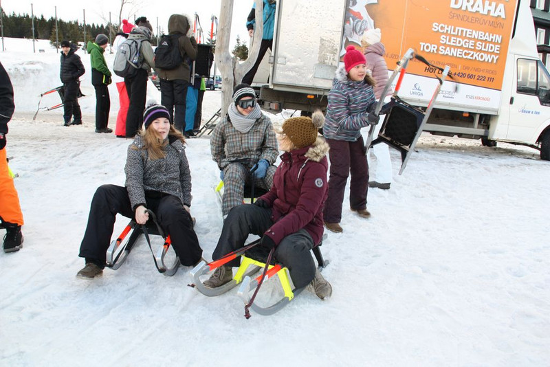 Die Fahrt ins Skilager begann am Montag pünktlich 9 Uhr an der Schule. Nach einer vierstündigen Fahrzeit kamen wir 13 Uhr im Quartier in Vrchlaby an. Dort haben wir kurz unsere Zimmer bezogen, sind aber gleich wieder losgefahren. Nach einem kurzen Stadtbummel ging es zur Rodelbahn nach Spindler Mühle. Die fast 4km lange Schlittenfahrt hat allen viel Spaß gemacht.