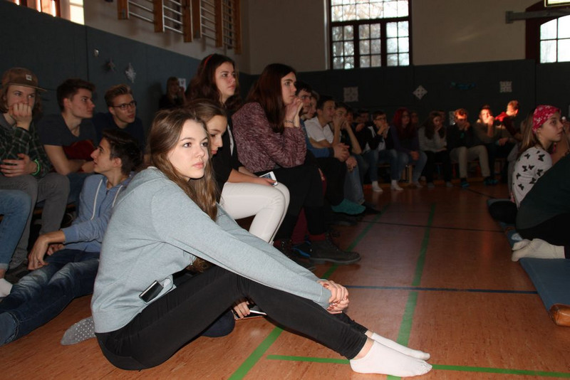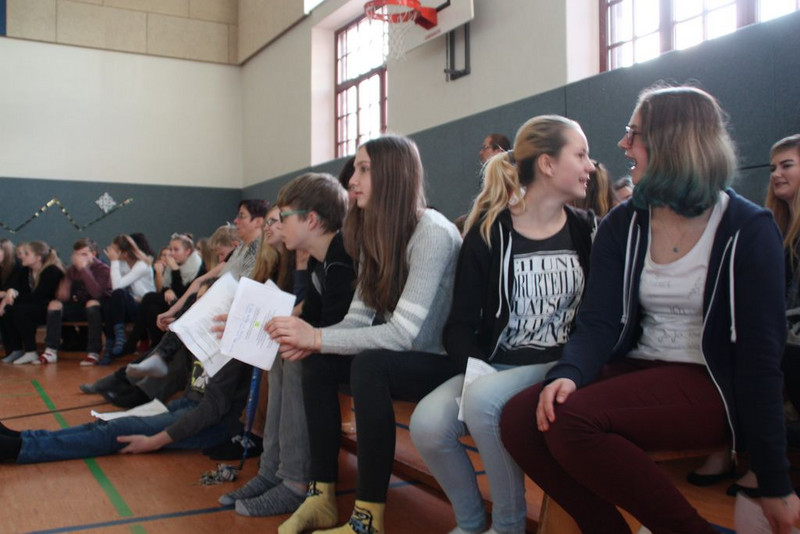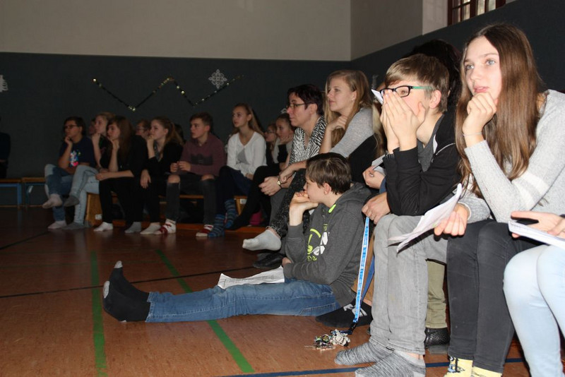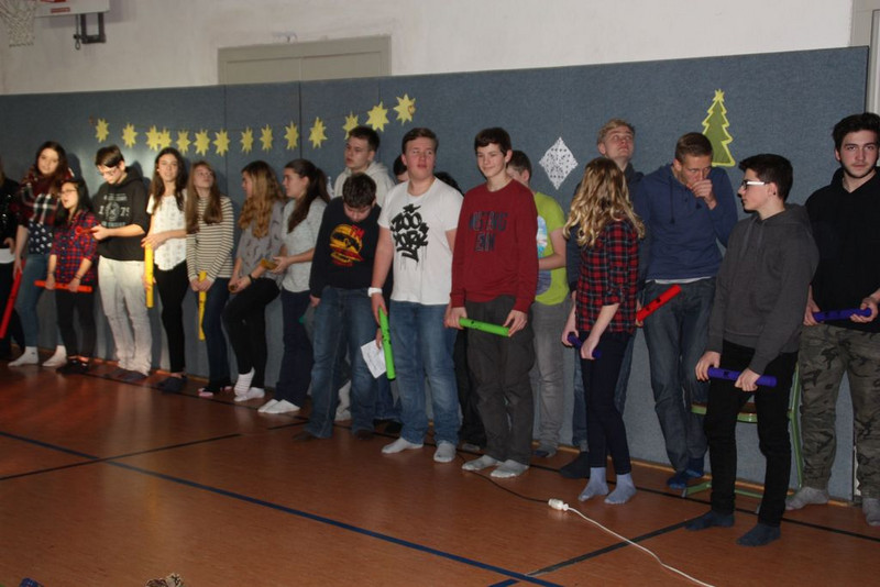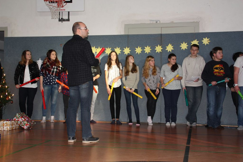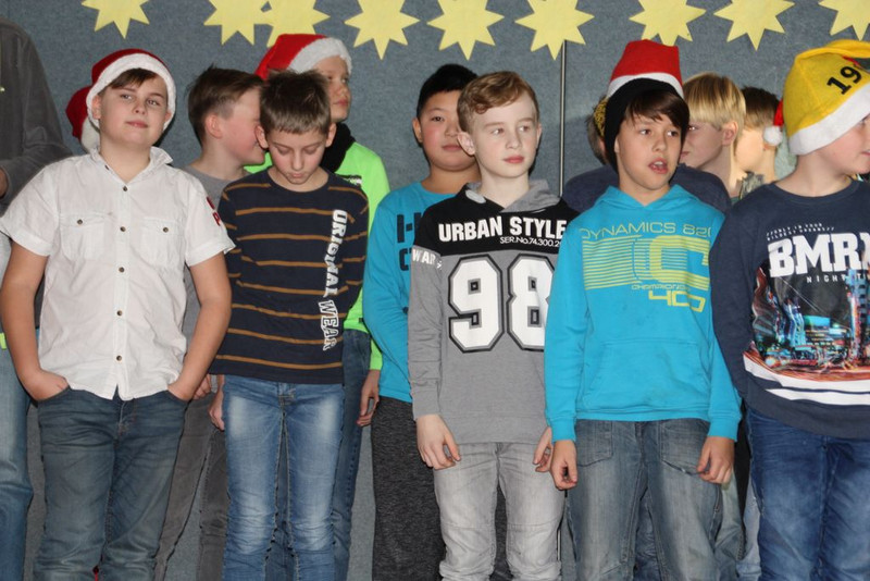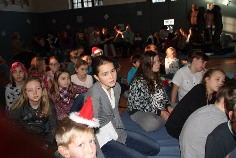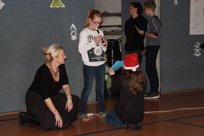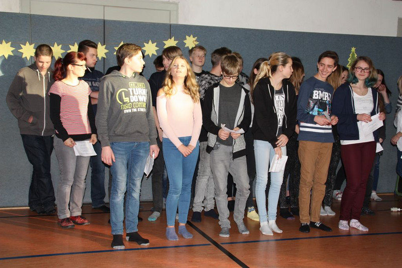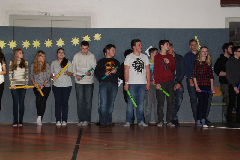 Auch in diesem Schuljahr fand am letzten Schultag vor den Weihnachtsferien ein gemeinsames Singen aller Klassen statt. Dazu hatte jede Klasse unter Leitung des Musikkurses der Klasse 10 ein Weihnachtslied ausgewählt und vorbereitet. Durch die räumliche Trennung mit der Außenstelle Augustusweg fand in diesem Schuljahr das Singen in beiden Schulgebäuden parallel statt.