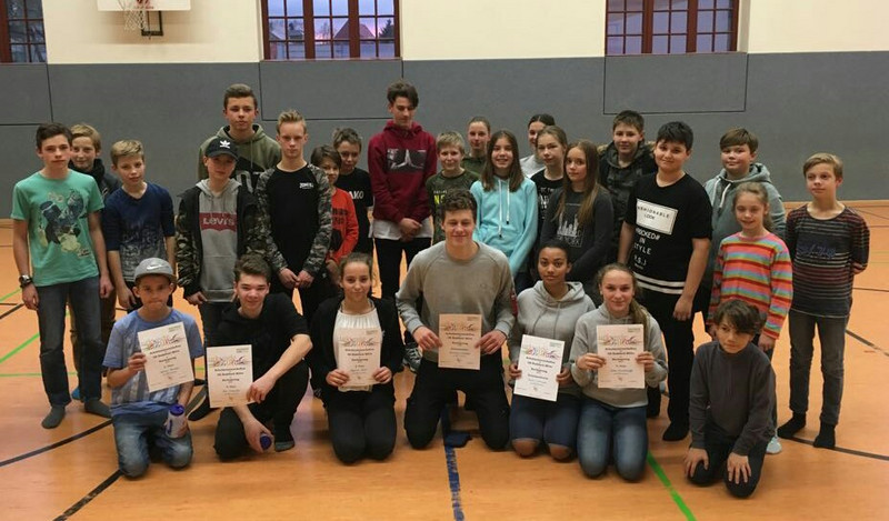 Am Donnerstag, den 30. 11. 2017 trafen sich zehn Mädchen und 21 Jungen zu den Schulmeisterschaften im Hochsprung in unserer Sporthalle. Nach tollen Leistungen konnten sich am Ende Sophia Lehmann aus der 8b und Maximilian Lantzsch aus Klasse 9 als zur Zeit beste Hochspringer der OS Radebeul Mitte auszeichnen lassen.