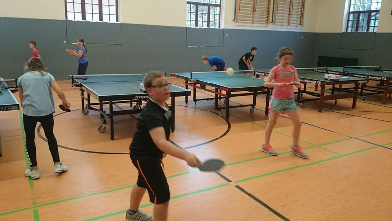 Die Schüler der Klassen 5 a und 5 b durften am letzten Dienstag ihr Können in der beliebten Sportart Tischtennis zeigen und wurden dabei von den Trainern des Tischtennisvereins Radebeul Herrn Steigemann und Herrn Nasdala fachkundig angeleitet. Nach zwei interessanten und sportlichen Stunden an der Tischtennisplatte konnten einige Schüler sogar mit Urkunden ausgezeichnet werden. Den Klassenwettstreit gewann die Klasse 5 b.