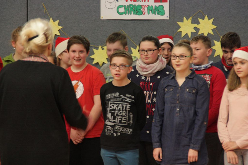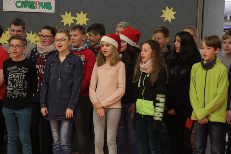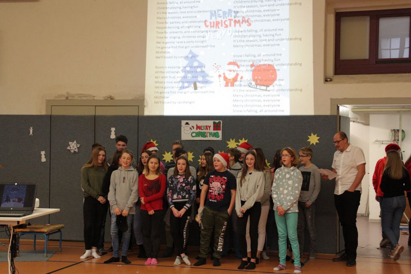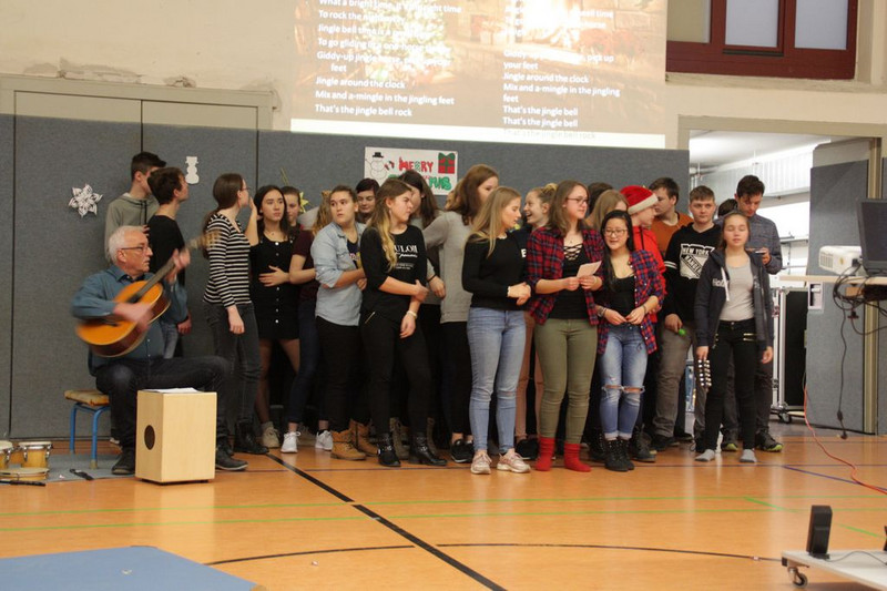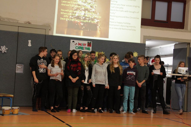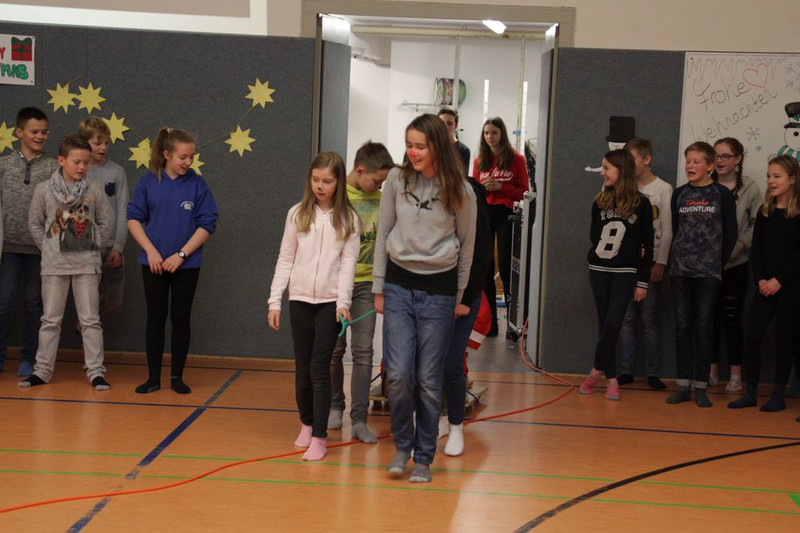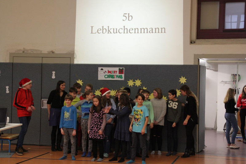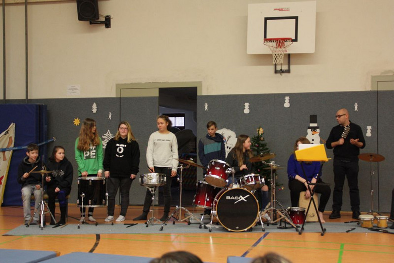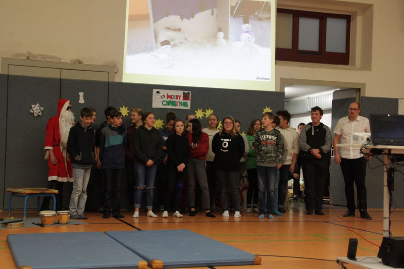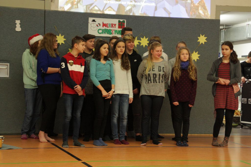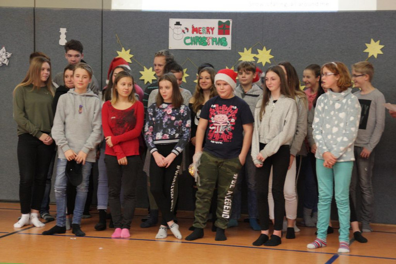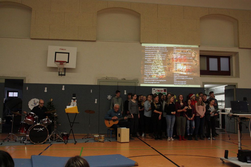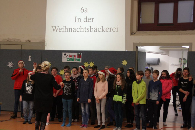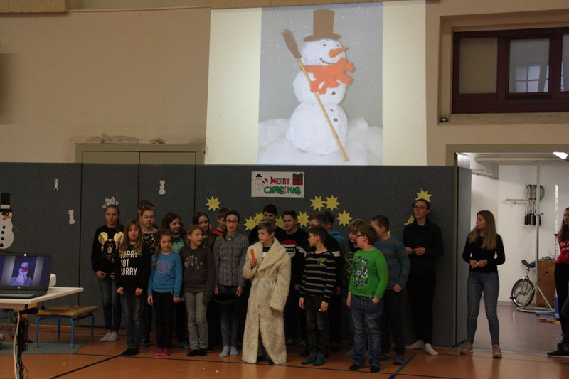 Bevor es in die Weihnachtsferien ging, trafen sich traditionell alle Klassen in der Turnhalle zum gemeinsamen musizieren. Jede Klasse hatte einen weihnachtlichen Beitrag vorbereitet.
