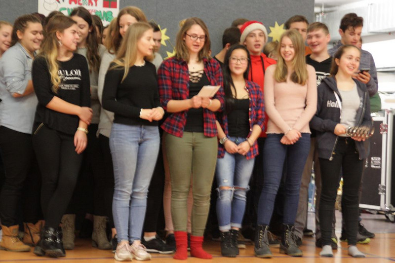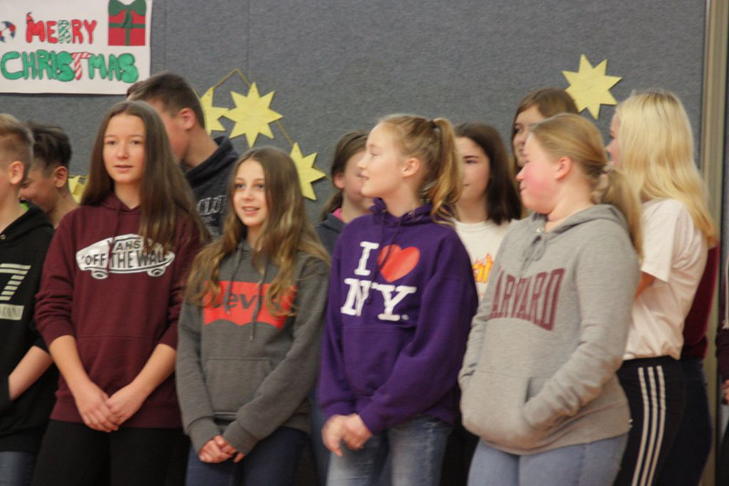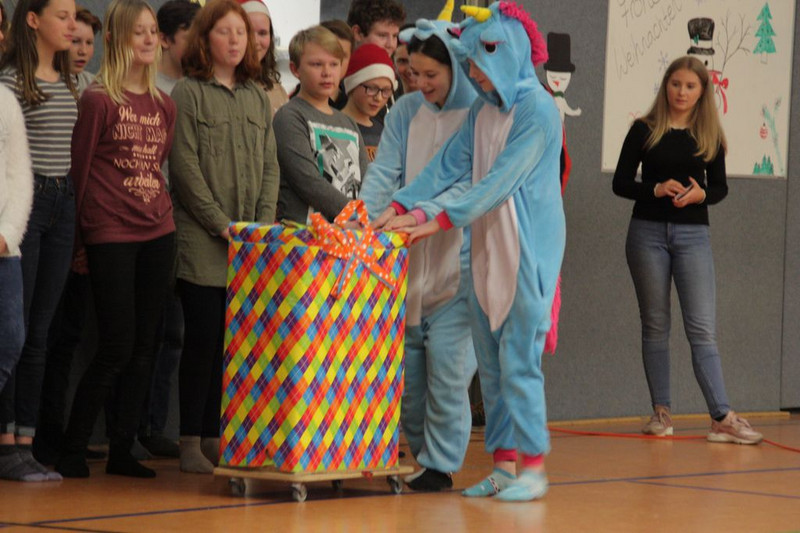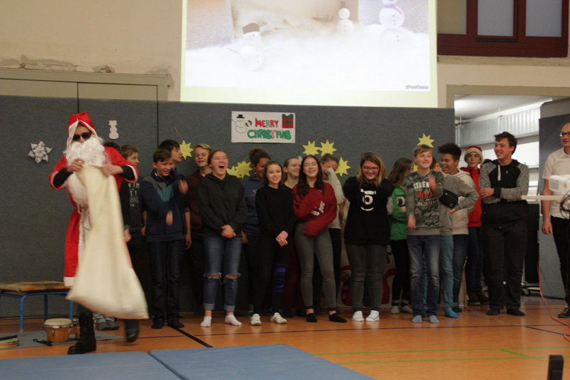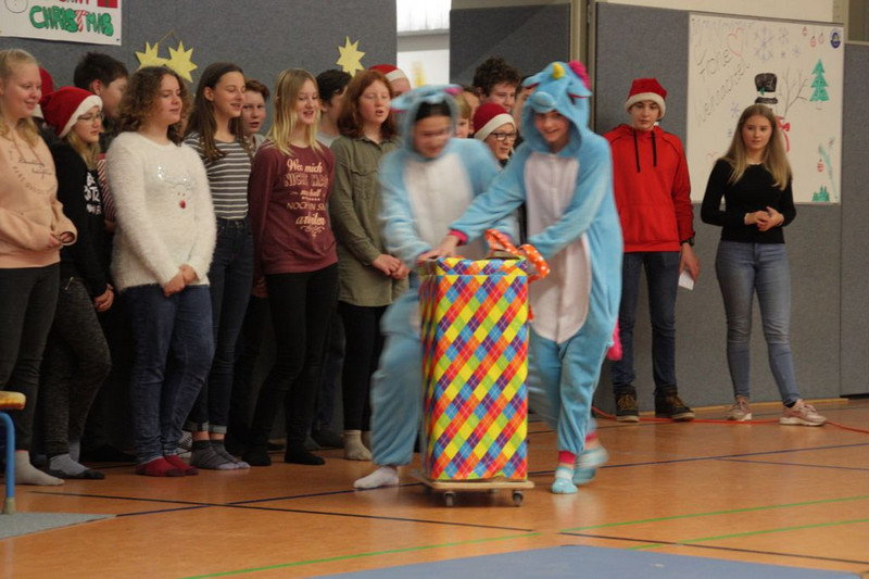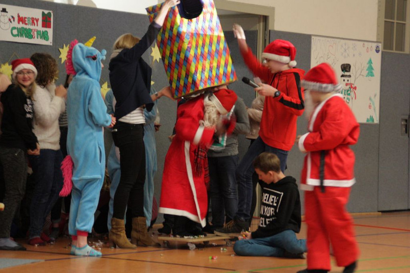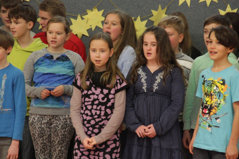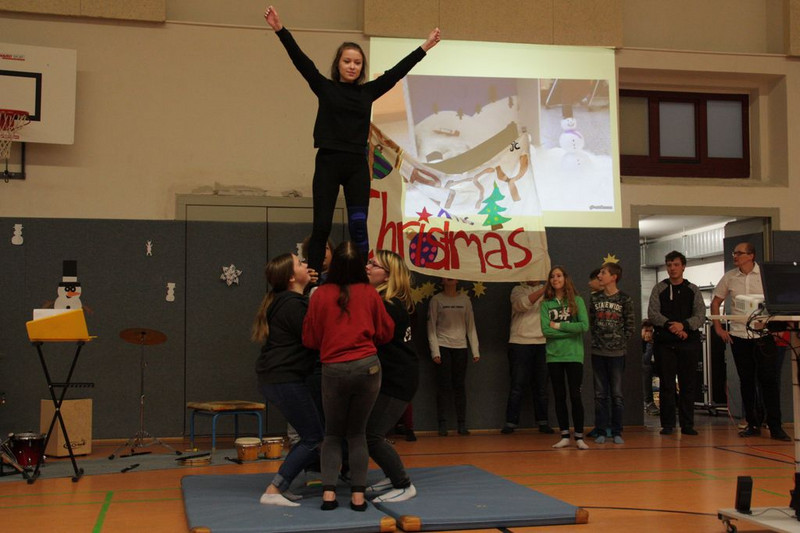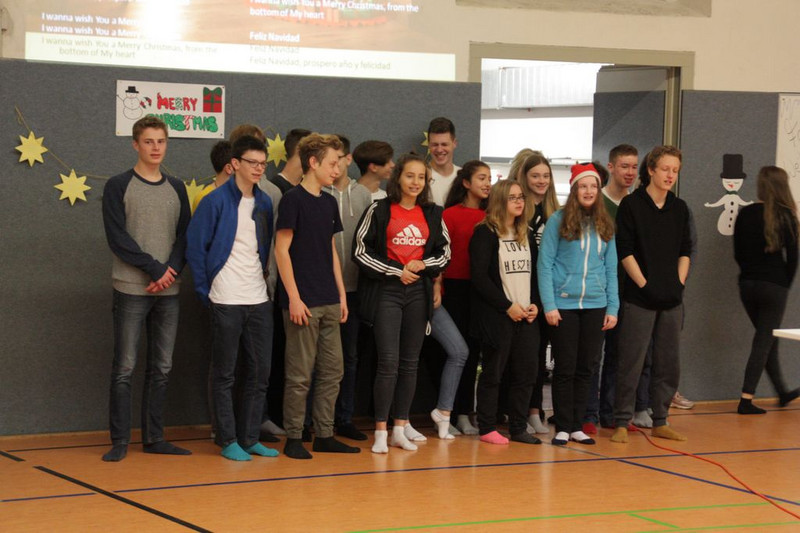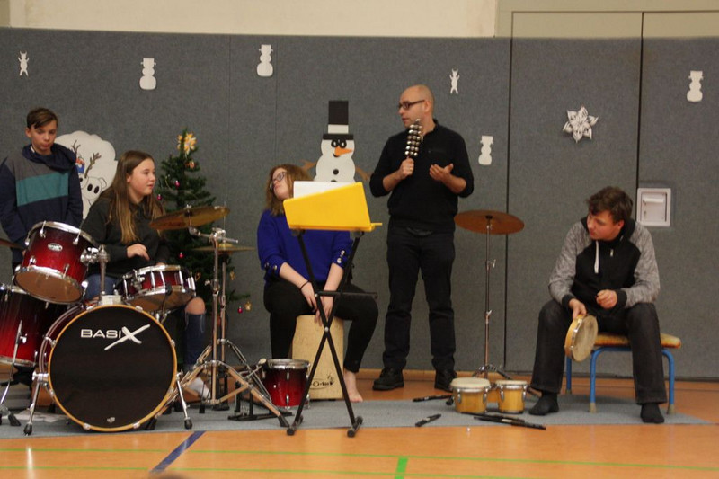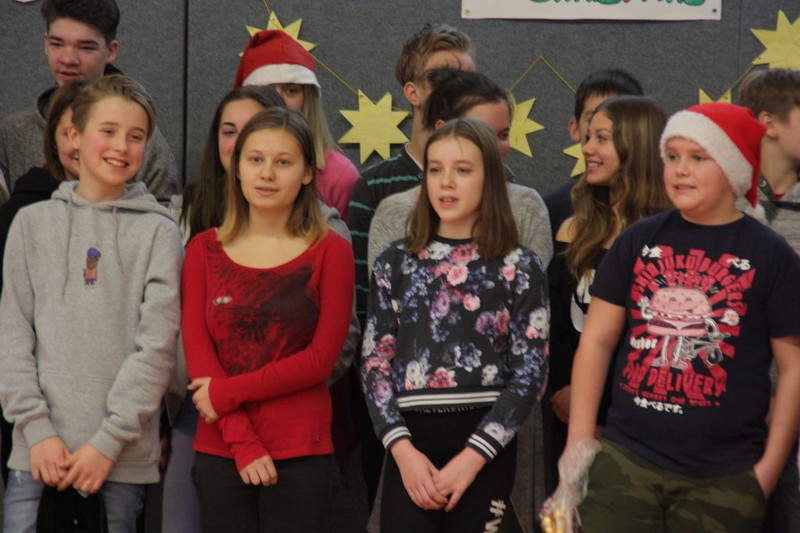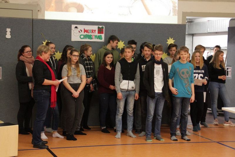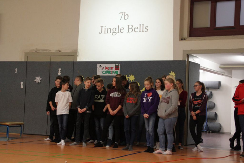 Bevor es in die Weihnachtsferien ging, trafen sich traditionell alle Klassen in der Turnhalle zum gemeinsamen musizieren. Jede Klasse hatte einen weihnachtlichen Beitrag vorbereitet.