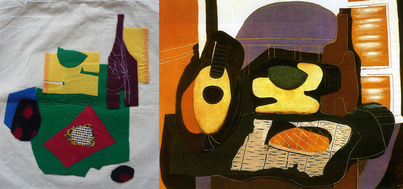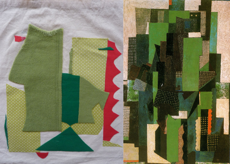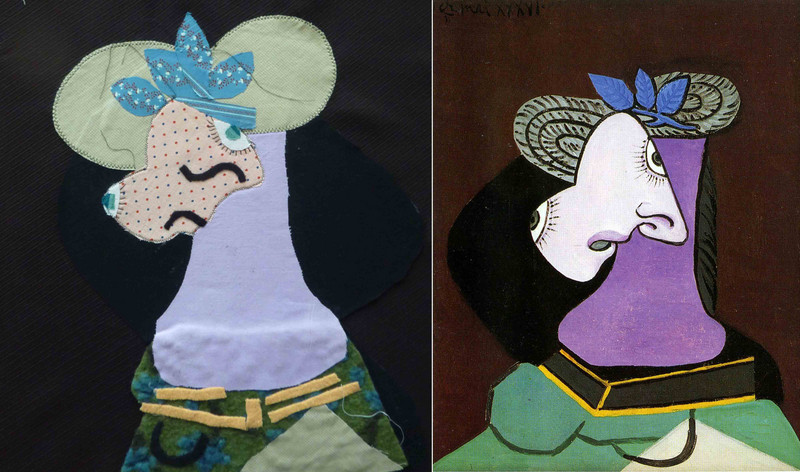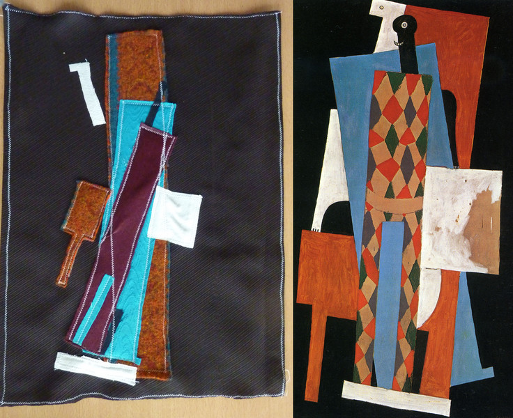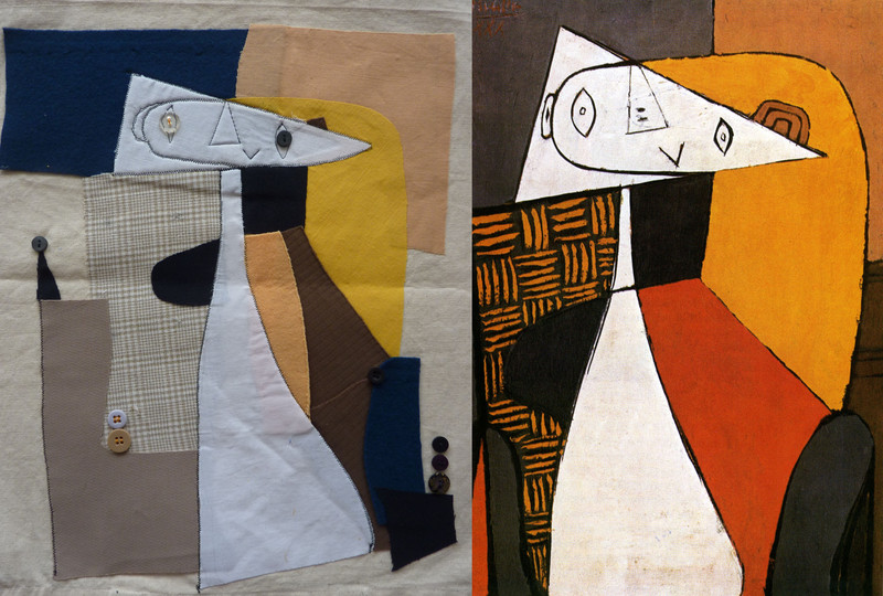 Vor uns lag ein riesiger Haufen Stoffreste. Die Schüler gestalteten aus diesen Stoffresten ihren eigenen Picasso. Der eine sehr nah am Vorbild, der andere voller Extraideen. Alle Stoffstücke wurden auf eine Kauflandtüte gebügelt, dabei geklebt und auch noch angenäht. Die 7. Klasse hatte gerade das Nähen mit der Nähmaschine gelernt. Ein voller Erfolg!