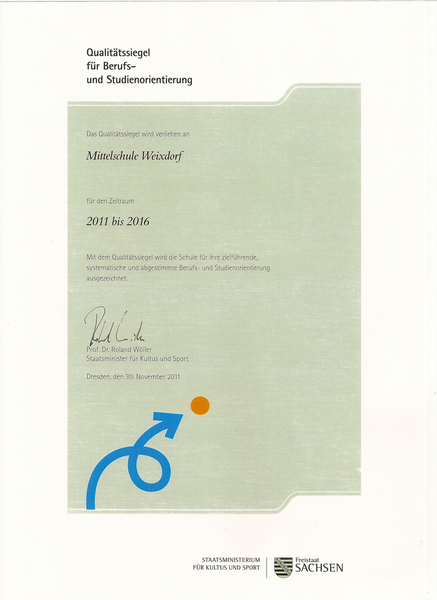 Urkunde - „Qualitätssiegel für Berufs- und Studienorientierung“