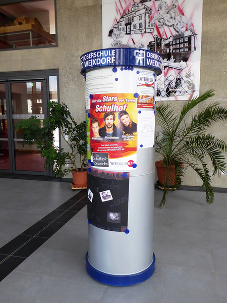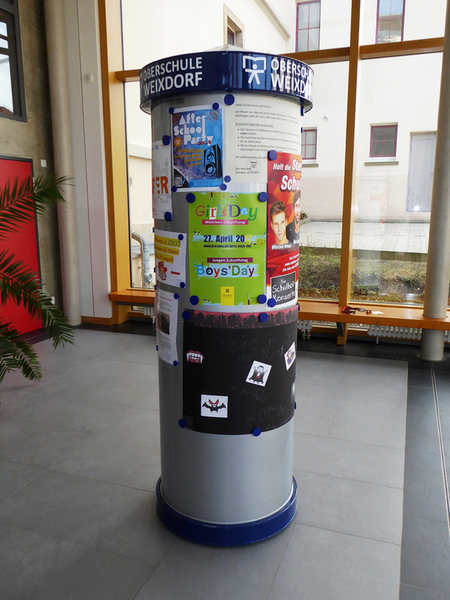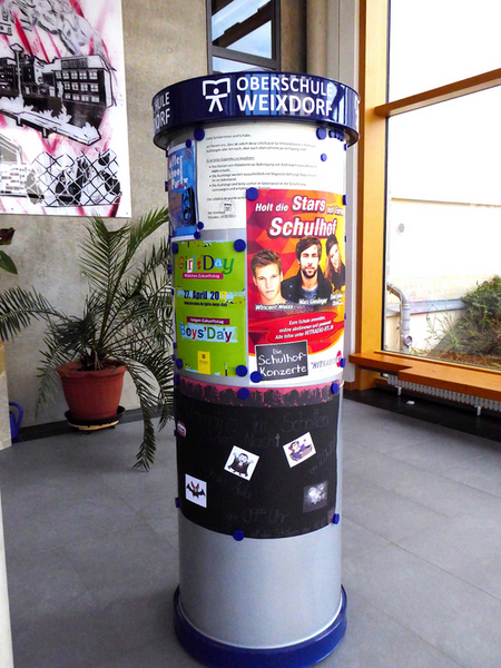 Jetzt steht UNSERE Litfaßsäule in der Pausenhalle und wird gut genutzt.