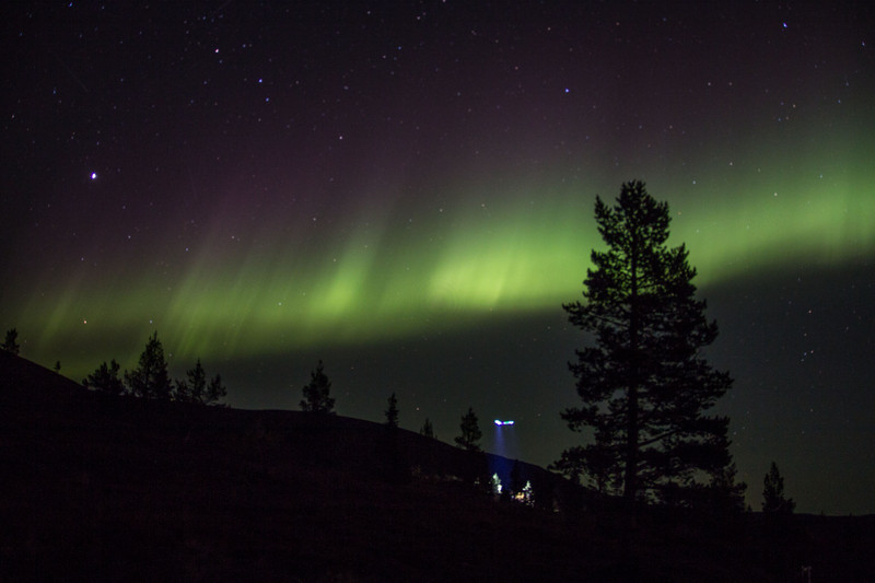Unsere Sonne ist zur Zeit ein sehr aktiver Stern (Siehe Nachlese zum Sternprojekt Teil 2). Eine aktive Sonne sendet ins All eine gefährliche Strahlung - den Sonnenwind. Vor dieser Teilchenstrahlung schütz uns unser Magnetfeld. Dort werden diese Teilchen abgelenkt, so das sie nicht auf die Erde gelangen. Alldings ist es möglich, dass ein geringer Teil dieser Teilchenstrahlung an den Polen in die Erdatmosphäre eindringt und mit den Luftteilchen reagieren. Dann entsteht ein atemberaubendes Naturschauspiel - die Polarlichter oder auch „aurora borealis”. Grüne und rote Polarlichter entstehen wenn die Sonnen Teilchen mit den Sauerstoffatomen der Luft reagieren. Violette und blaue Polarlichter treten bei der Reaktion mit den Stickstoffatomen der Luft auf.
