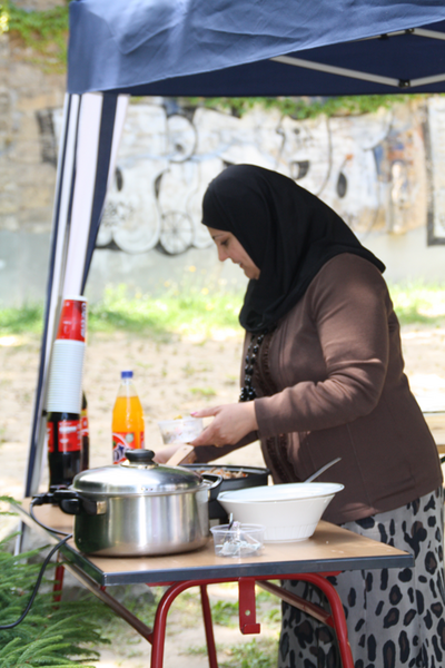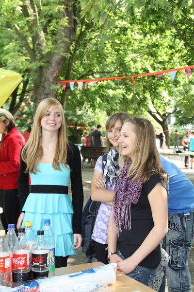 Zum Abschluss gab es ein großes Lagerfeuer und dazu leckeren Knüppelkuchen. Außerdem kochte Fr. Gazim auch eine kulinarische Überraschung. Mit Popcorn und Zuckerwatte verwöhnte uns die Firma Sodexo. Wer es lieber herzhaft mochte, hielt sich an unseren Stand mit Bratwurst und Steak. Dieses Sommerfest war einer der Höhepunkte in diesem Schuljahr. Unser Fest wird von Jahr zu Jahr abwechslungsreicher. Außerdem bedanken sich die 7. Klassen für die vielen Spenden für das Mutter-Kind-Heim in der Ukraine.