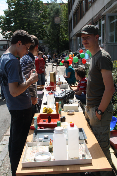 Aber auch die Teilnehmer der Naturwissenschaften kamen auf ihre Kosten und führten atemberaubende Experimente durch. Herr Dubrau veranstaltete sportliche Aktivitäten in unserer Turnhalle, wie z.B. Torwand schießen und Volleyball-Turnier mit den Schülern der 8. und 9. Klassen sowie einer Lehrerauswahl.