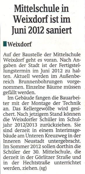 Bauchronik der Mittelschule Weixdorf