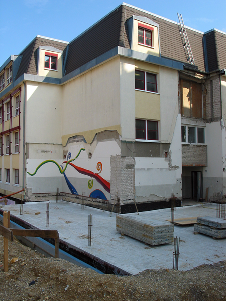 Hier aktuelle Bilder vom neuen Anbau. Das Gebäude wächst nun schon in die Höhe. Es geht also voran. Wir freuen uns.