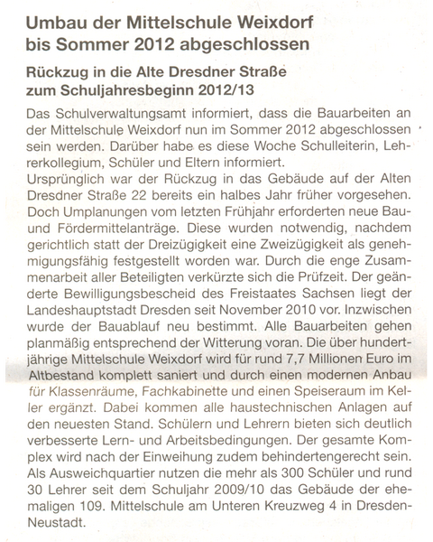 Bauchronik der Mittelschule Weixdorf